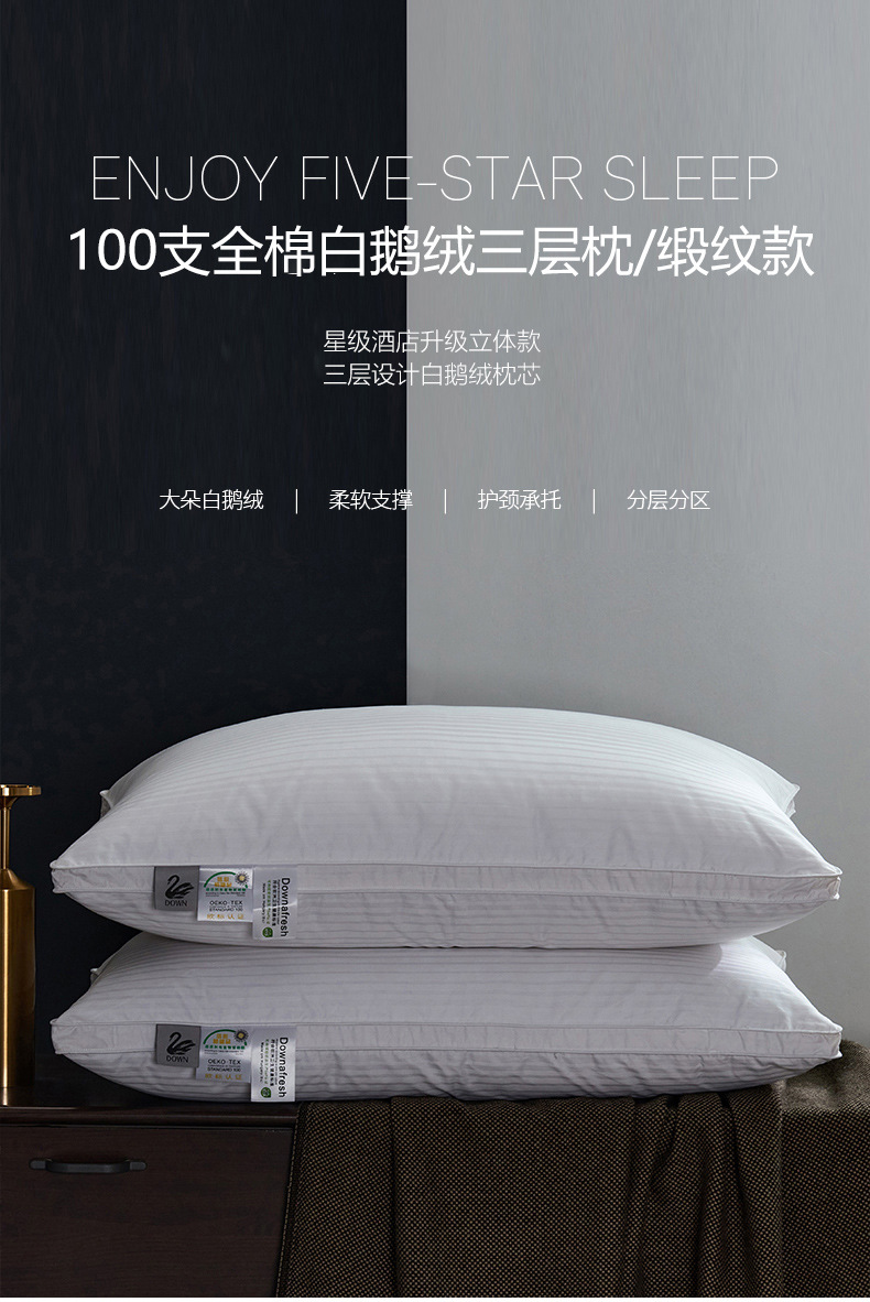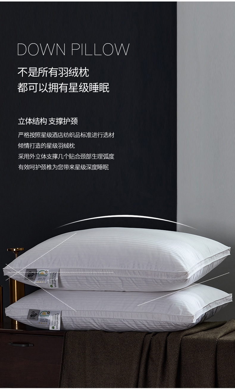 Настоящая пуховая подушка, подушка из 100% хлопка и сатина, специально разработанная для пятизвездочных отелей, подушка для защиты шейного отдела