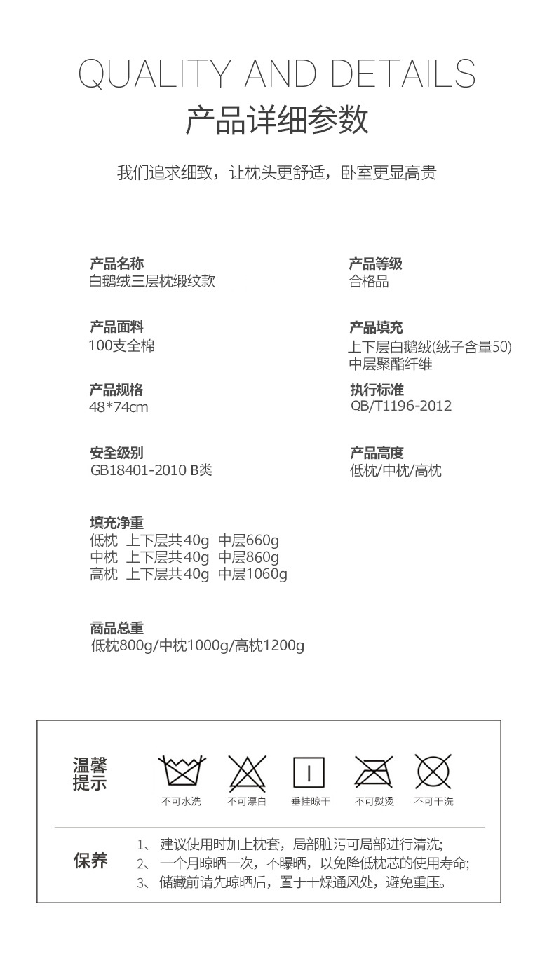 ![]() | 100-count white goose down composite pillow satin style/grey single pack | 48*74cm high pillow 1200g | ¥119.0 / ≈ 1 433 ₽ | 2994 | 6088020130114 | |
