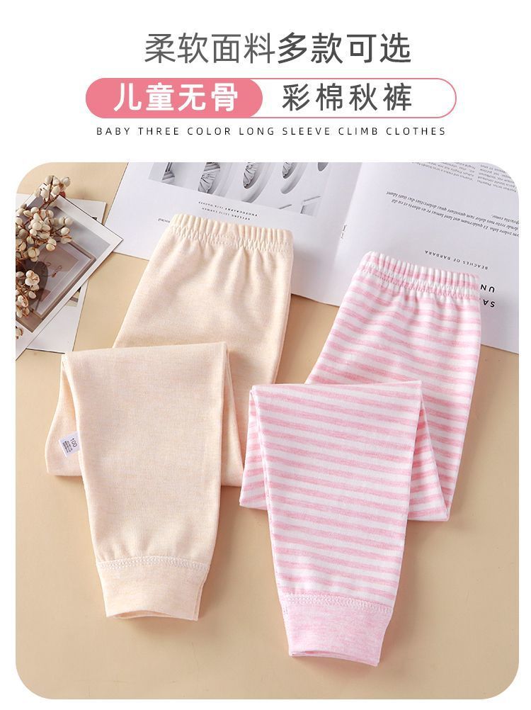 Бесшовные цветные хлопковые термобрюки для мальчиков и девочек, домашняя одежда для сна весна и осень, бесшовные леггинсы из хлопка для малышей