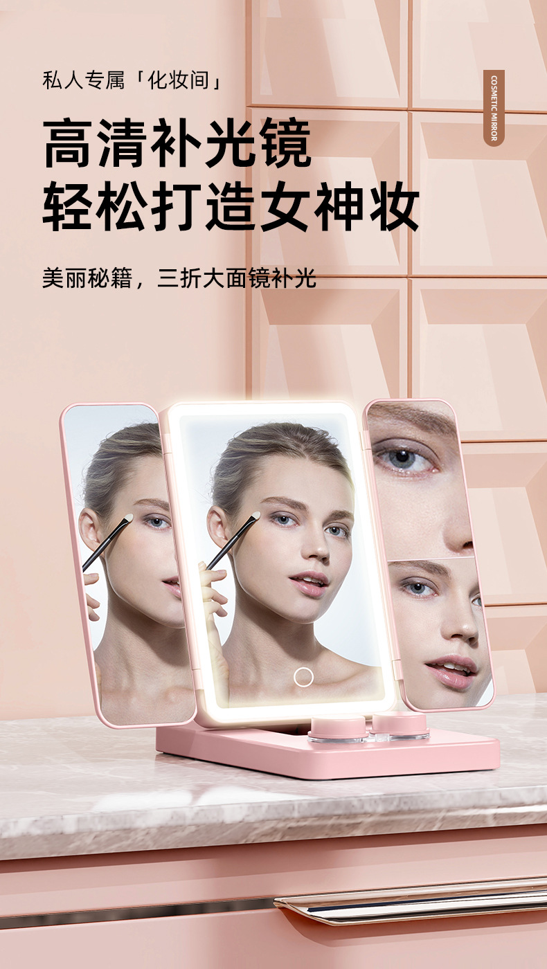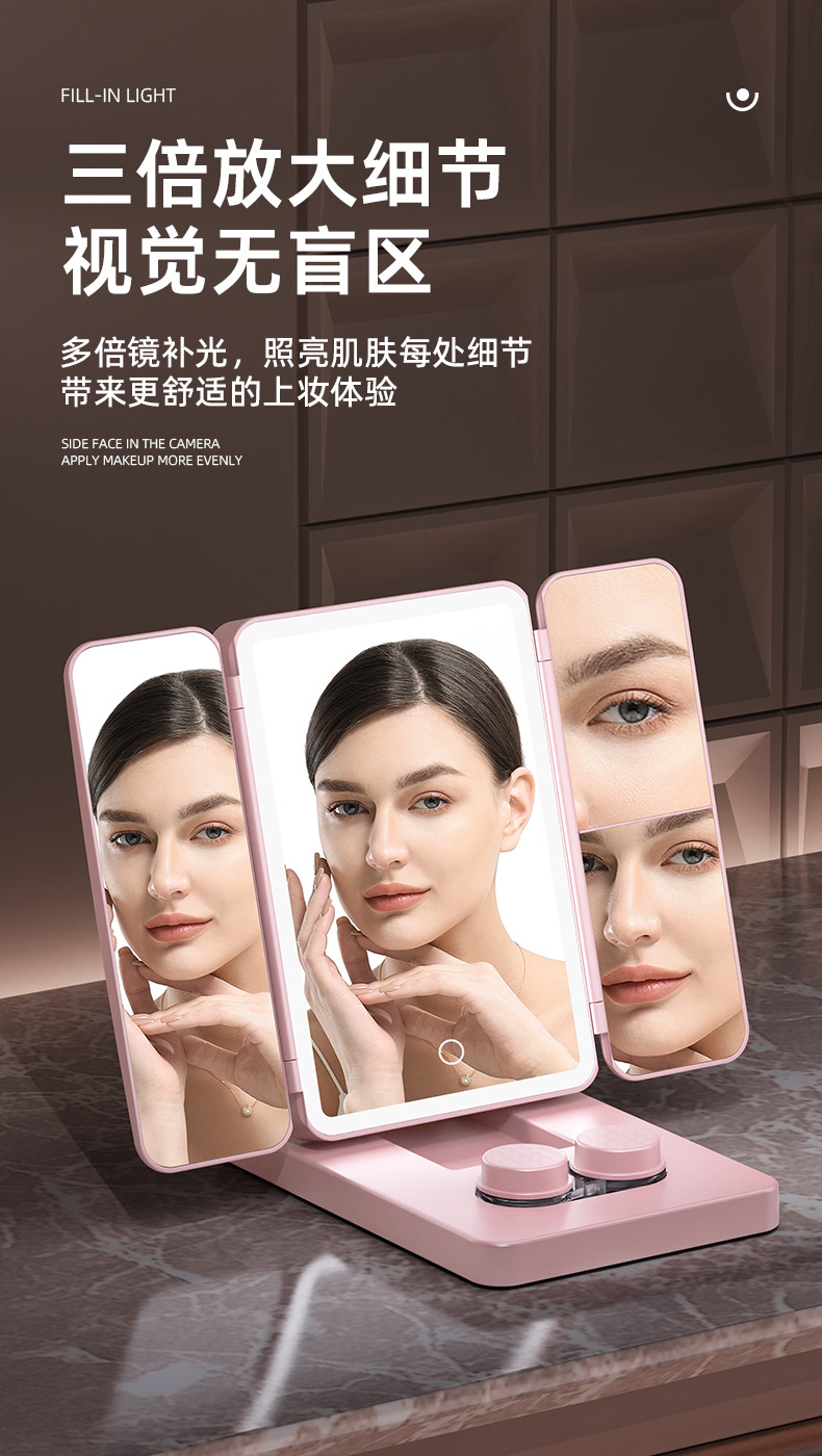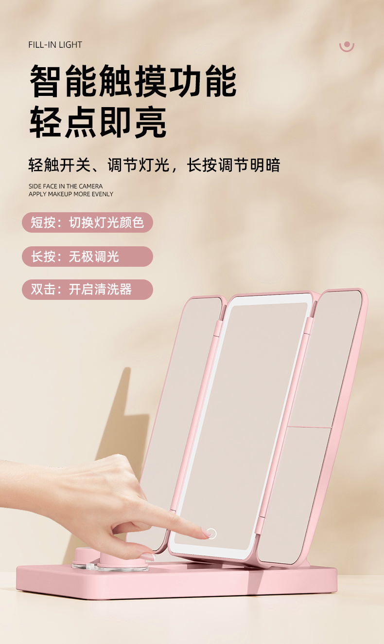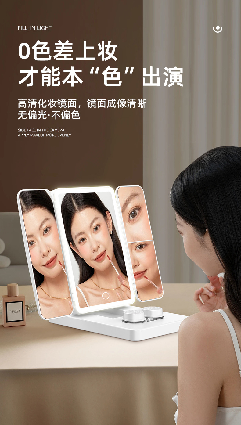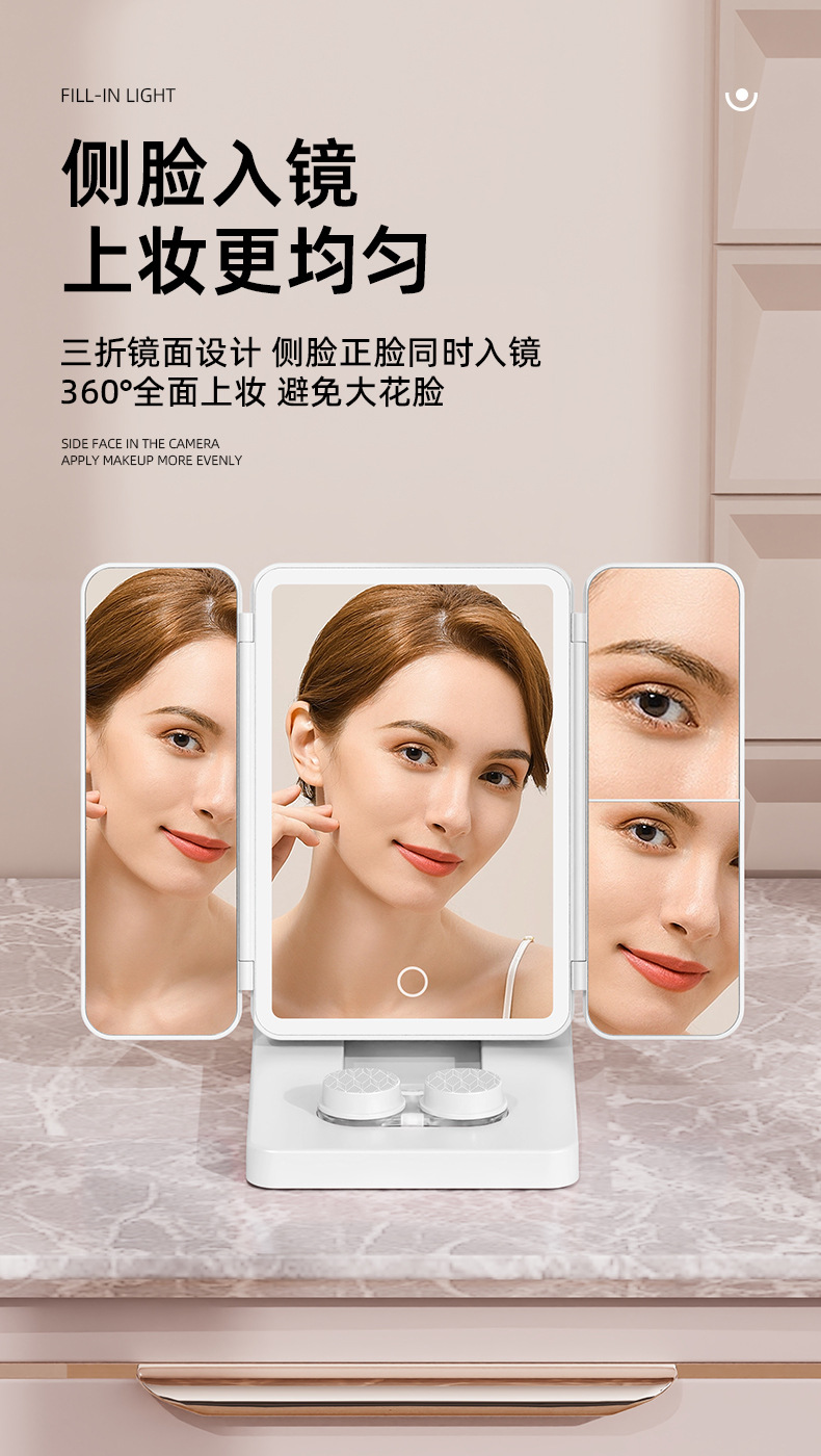 Складное косметическое зеркало с подсветкой, настольное телескопическое вращающееся зеркало с зарядкой