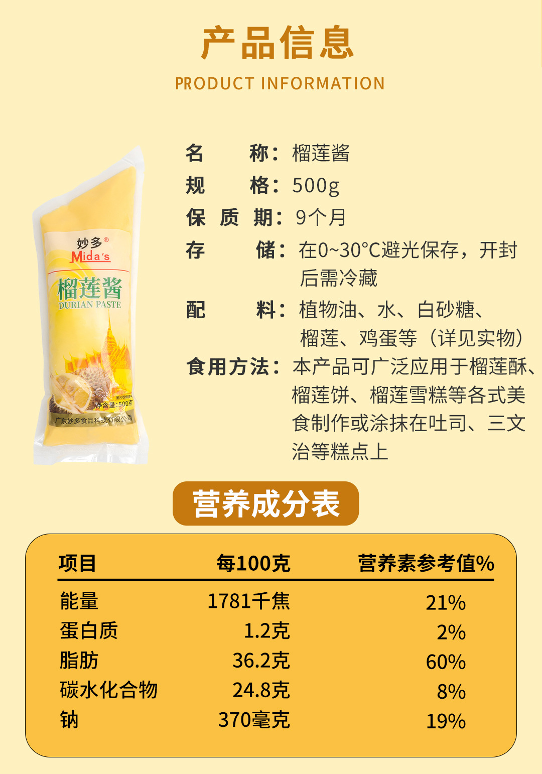 Пюре из дуриана Miaoduo 500 г, специальный дуриановый торт, свежие ингредиенты для выпечки