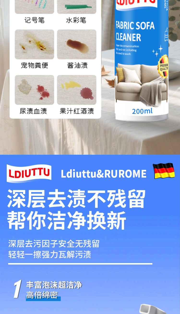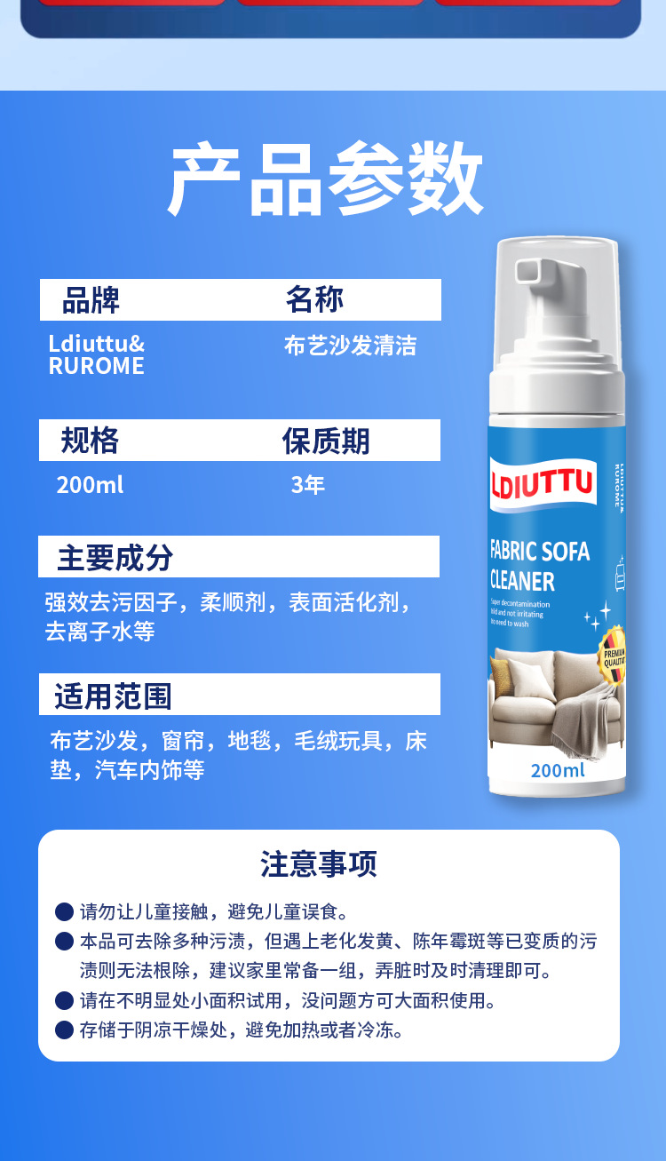 Номер товара 1 bottle of ldiuttu brand fabric sofa cleaner 200ml