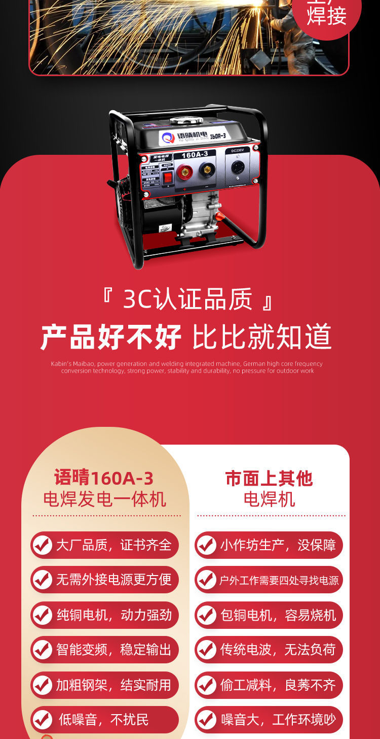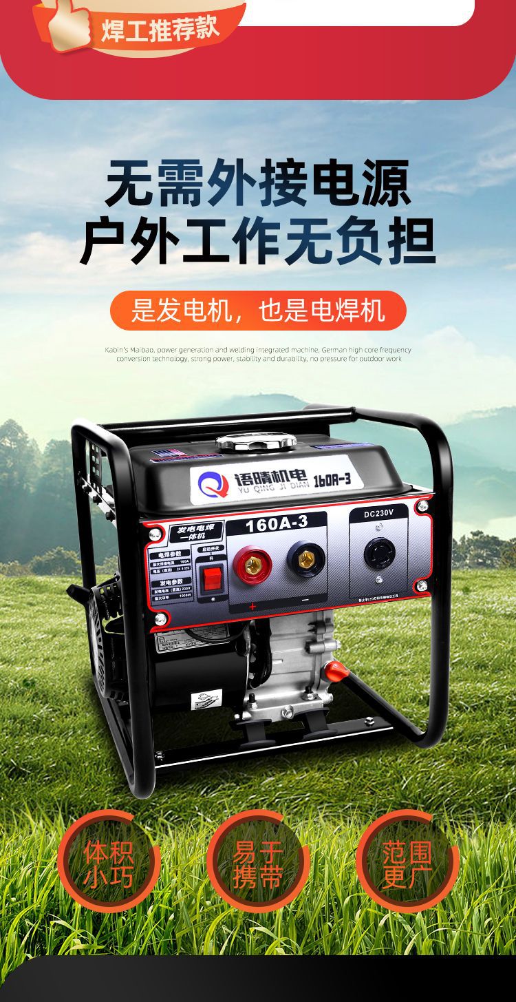 Бензиновая сварочная машина двойного назначения, полностью медная, 220В, малый портативный инструмент для сварки на строительной площадке