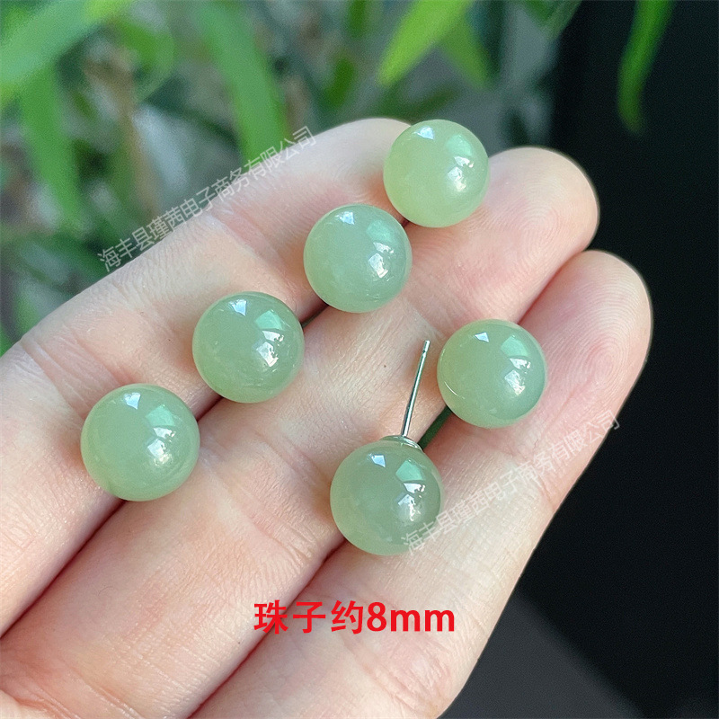 Поставка натуральных серег из нефрита Хэтиань с круглой бусиной из яшмы, зеленые и белые нефритовые бусины, простые серьги