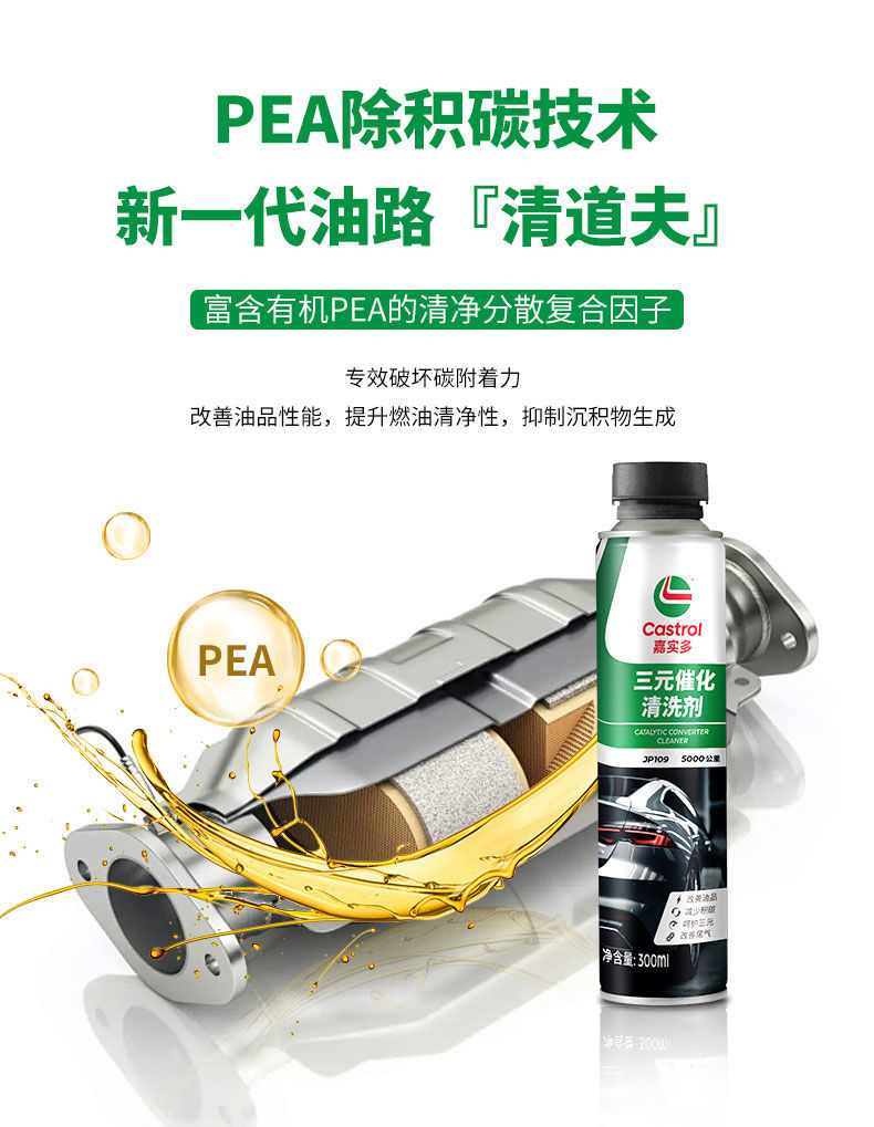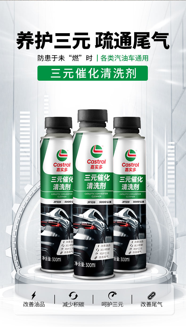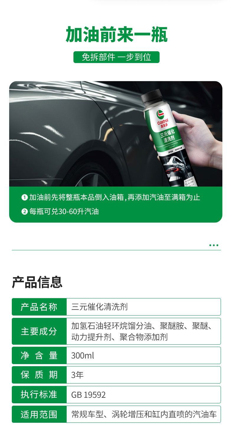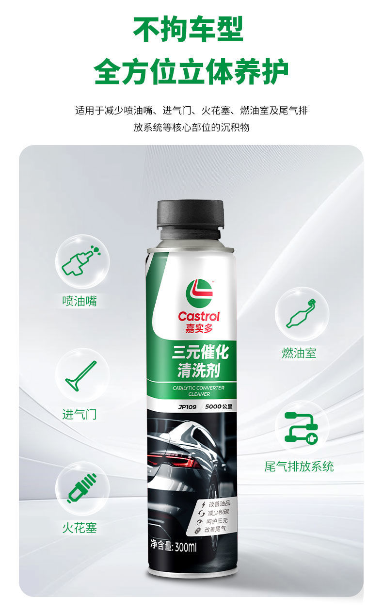 Трехкомпонентный каталитический очиститель Castrol, удаление углеродных отложений из двигателя без разборки, 300 мл