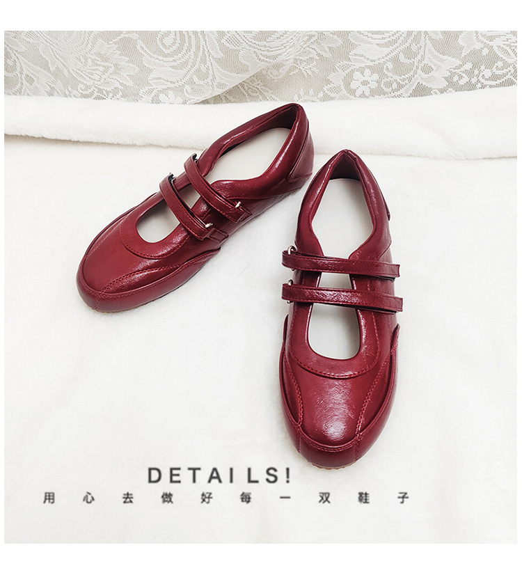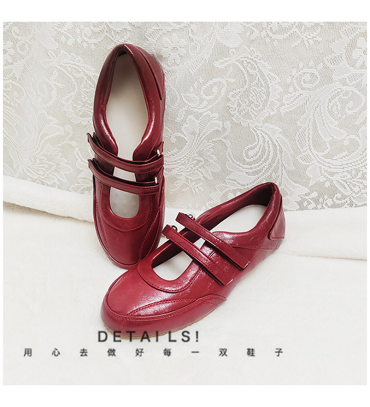 Ретро красные туфли с высотой каблука французские балетки на липучках для женщин 2025 нового сезона