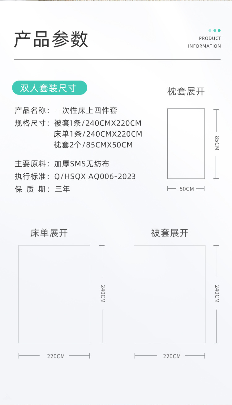 Hanshi одноразовый комплект из четырех частей для кровати, экстра большой 240*220 см, белый