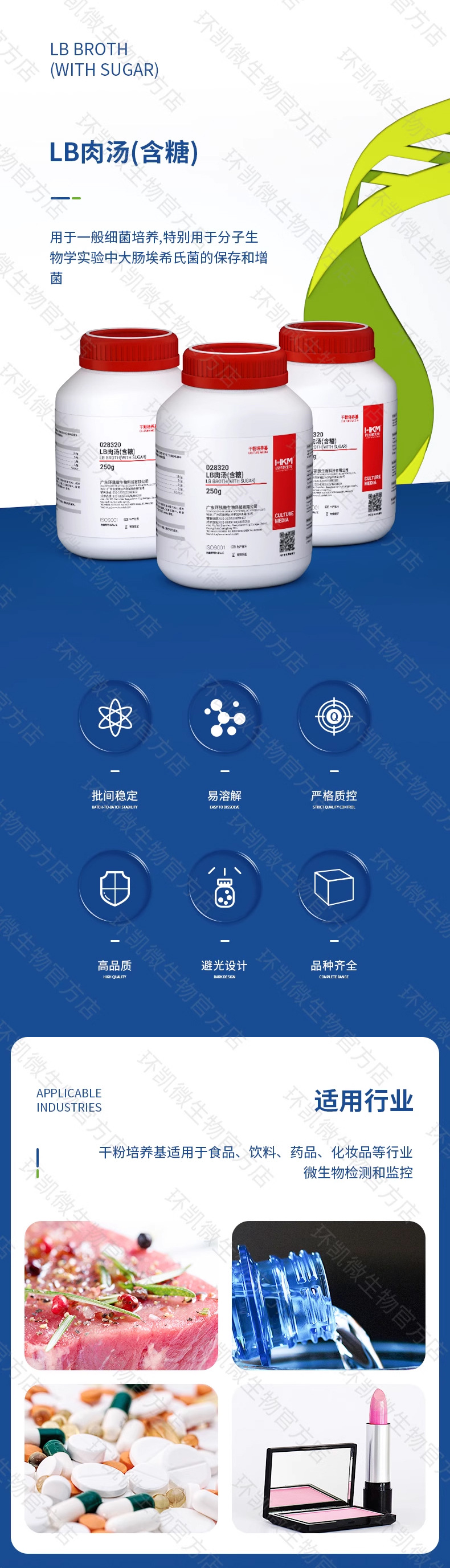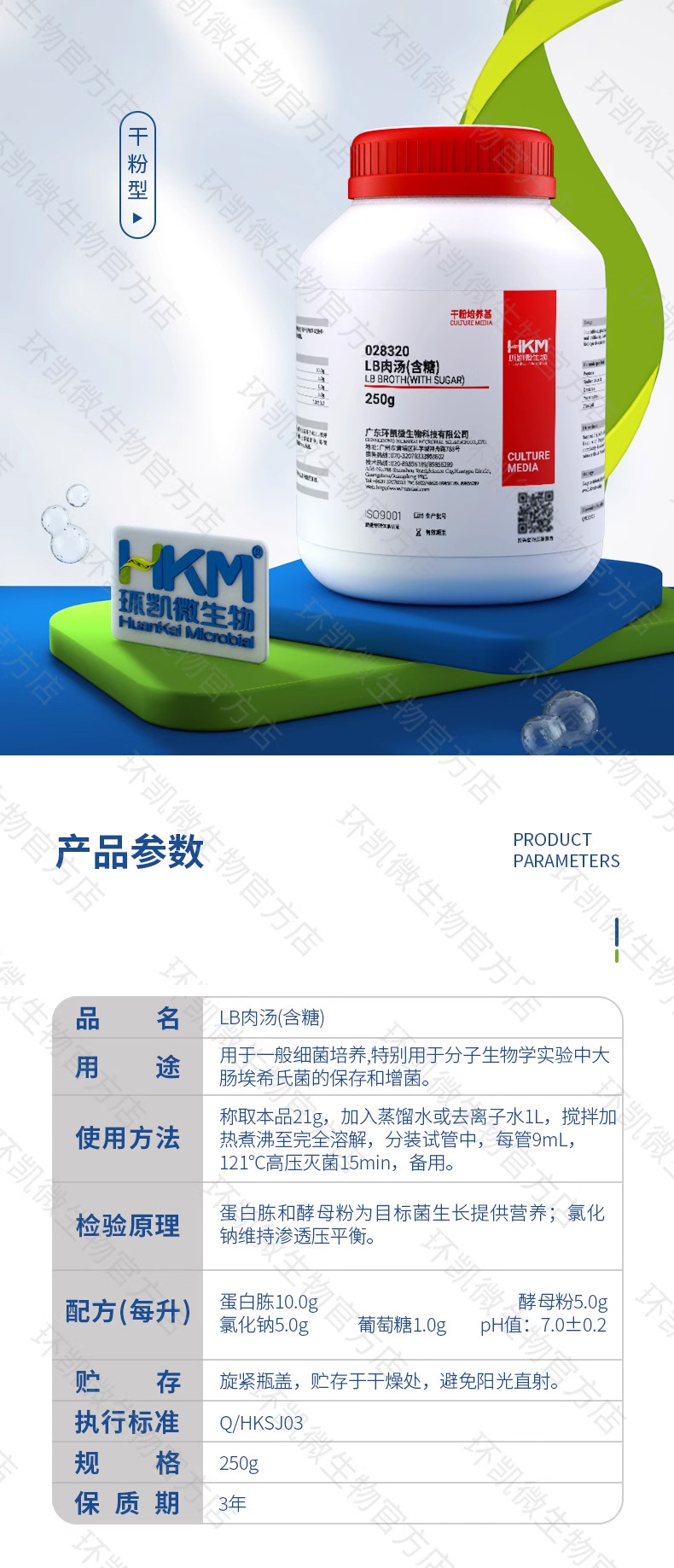 Huan Kai микроорганизм 028320 lb бульон сухой порошок культуральная среда 250g Escherichia Coli сохранение и обогащение