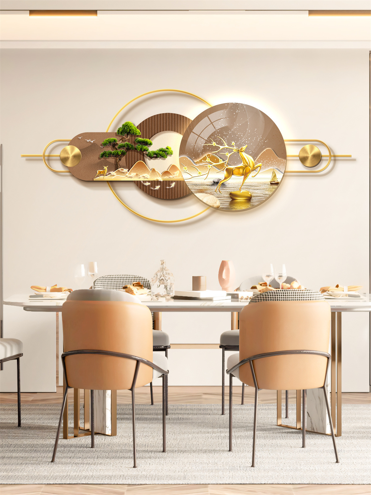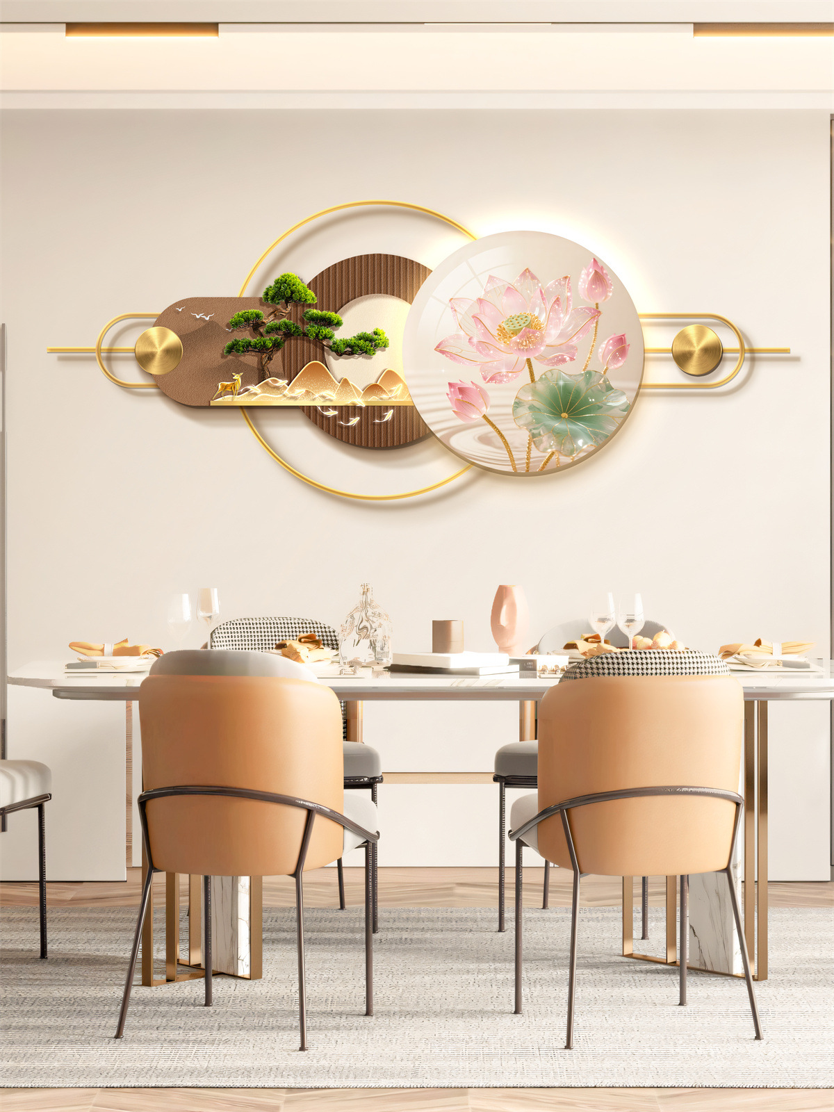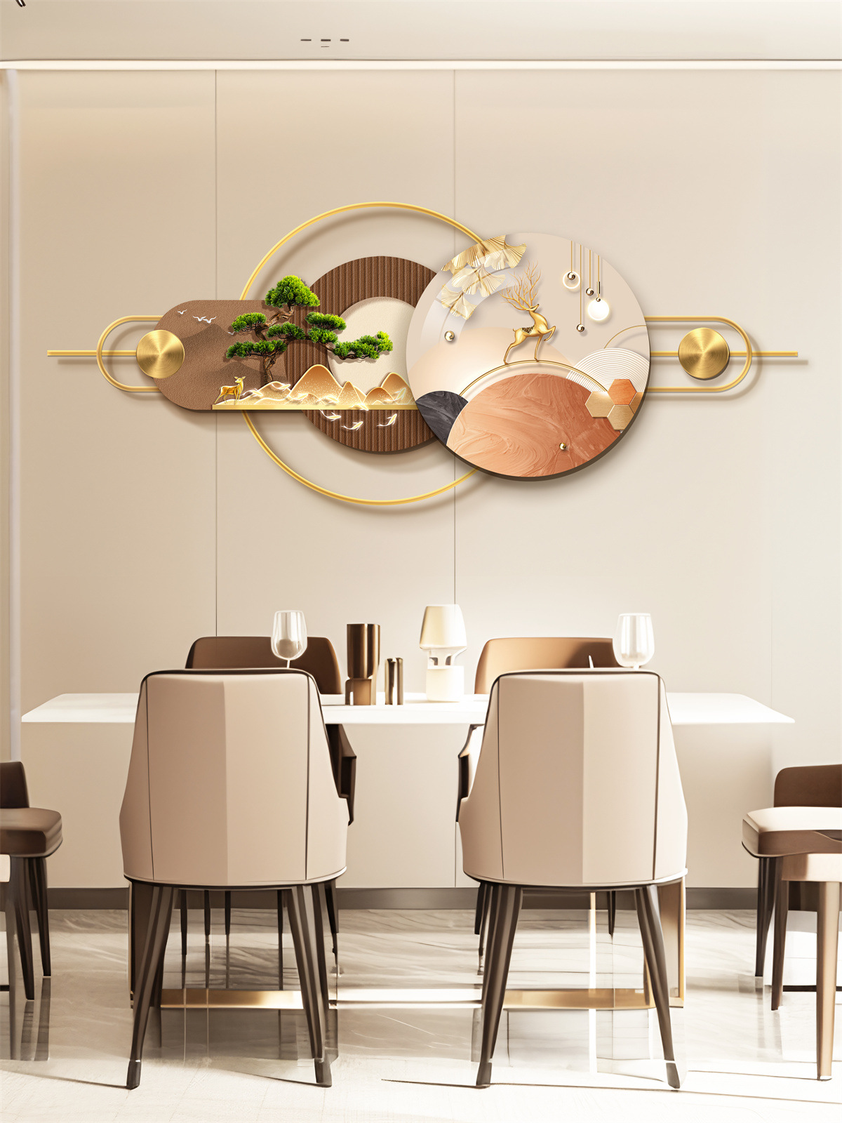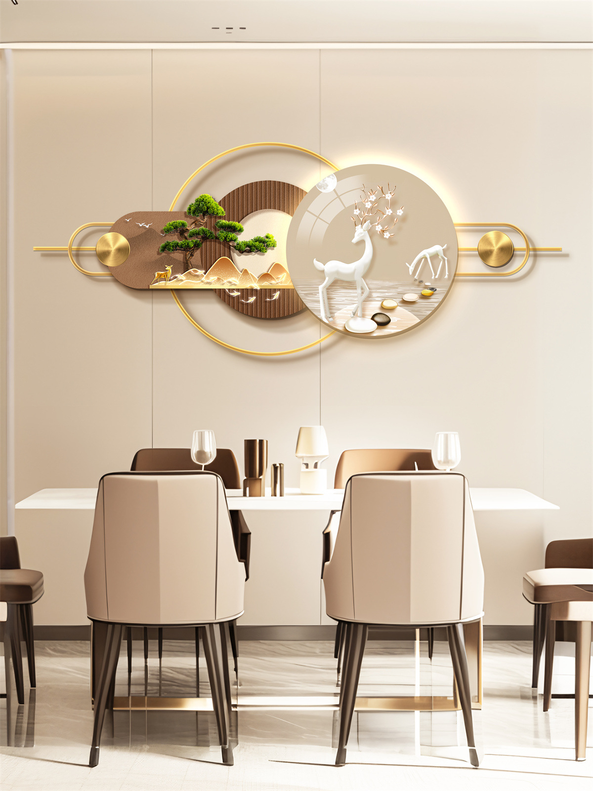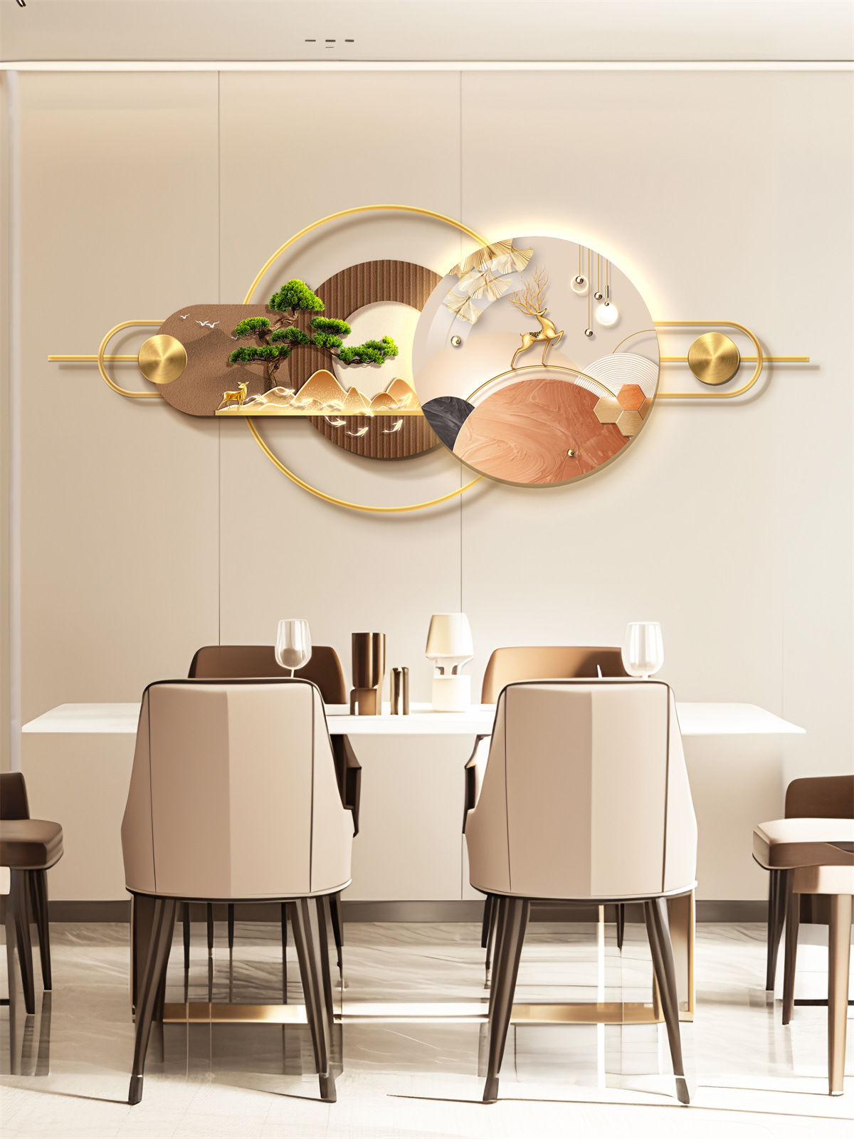 Ресторан Трехмерная Мурала Декоративная Живопись Атмосфера Световая Живопись Высококачественный Фоновая Стена Алюминиевый Сплав Комбинация Подвесная Живопись