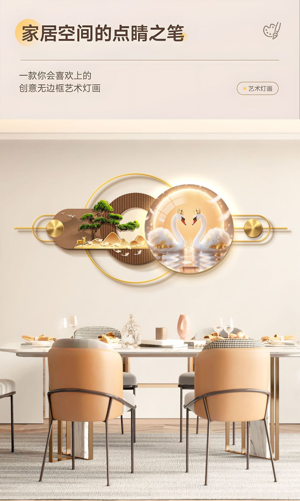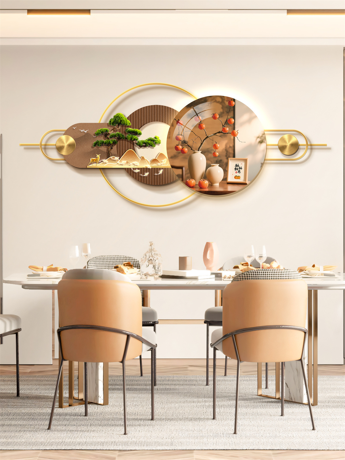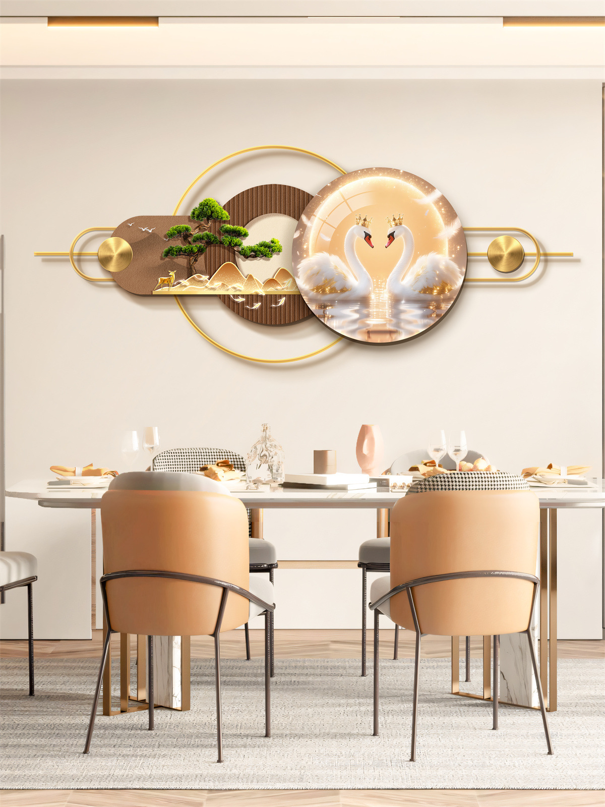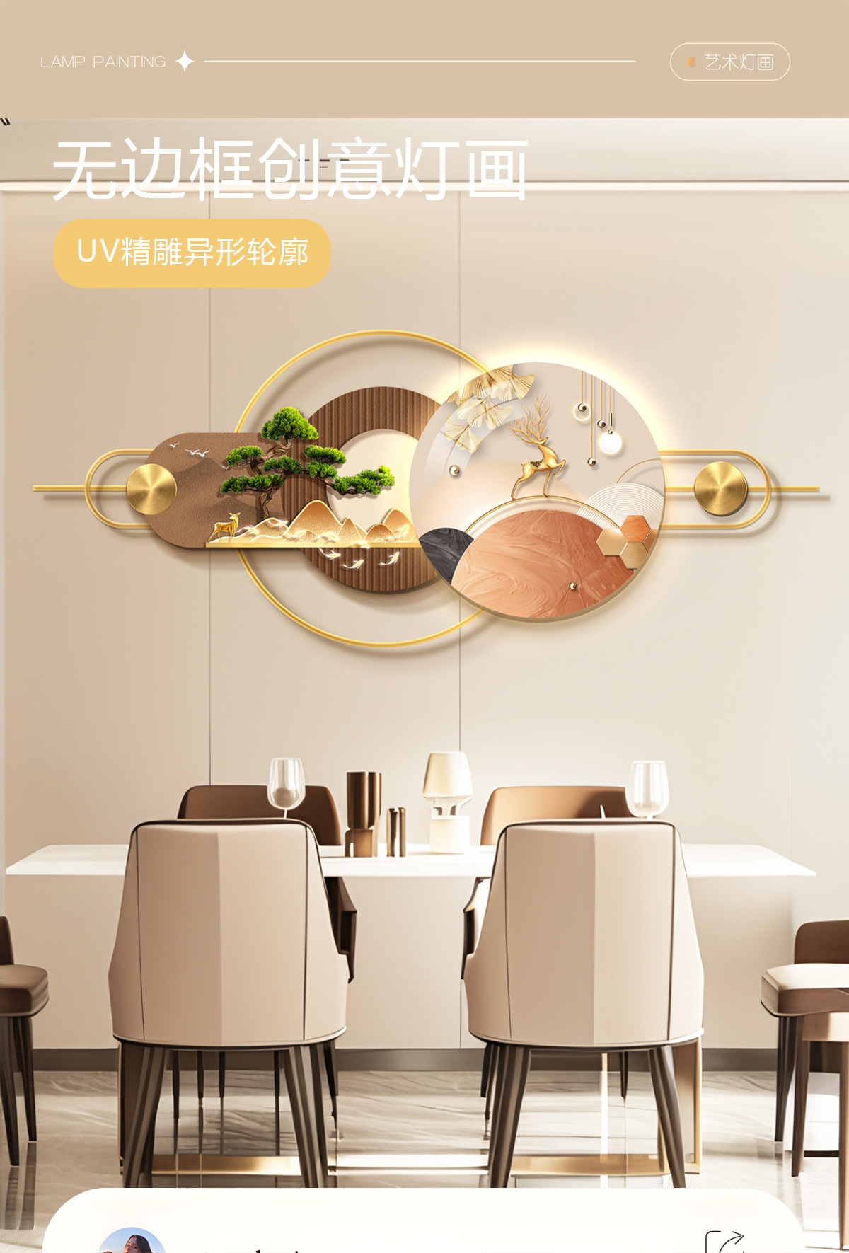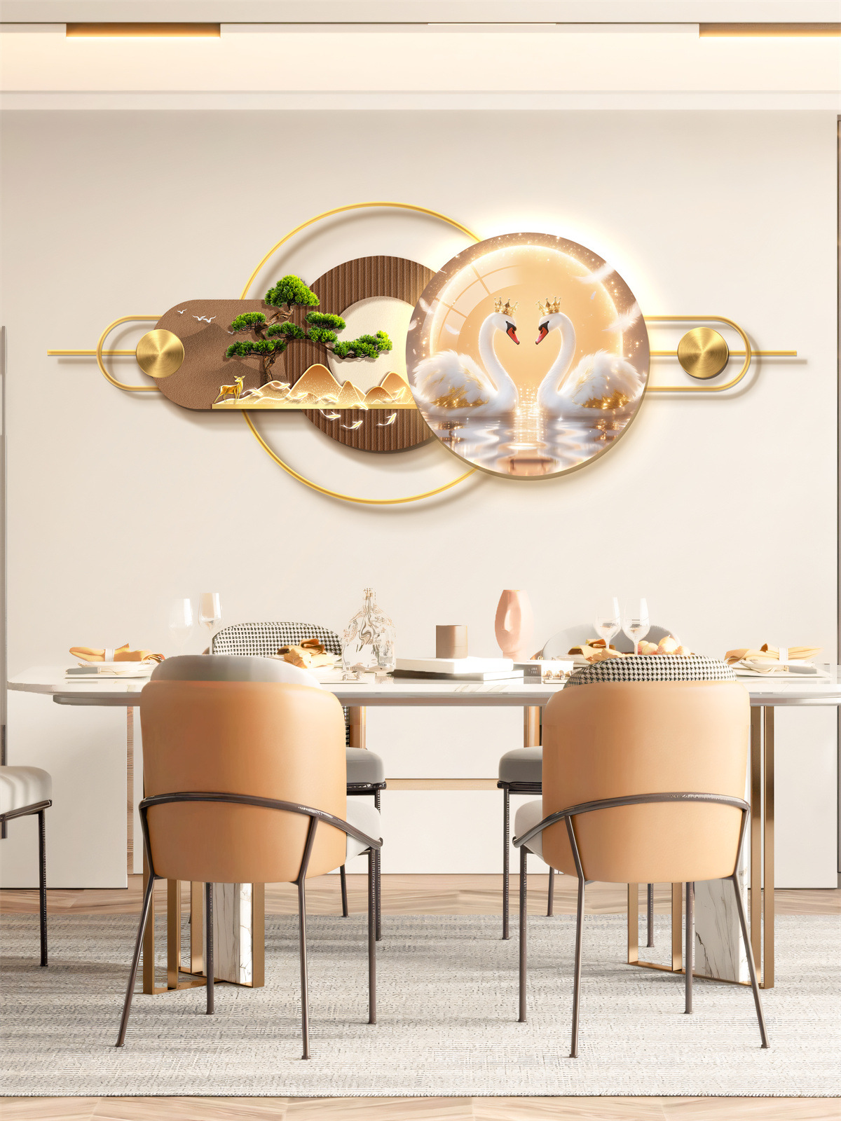 Ресторан Трехмерная Мурала Декоративная Живопись Атмосфера Световая Живопись Высококачественный Фоновая Стена Алюминиевый Сплав Комбинация Подвесная Живопись