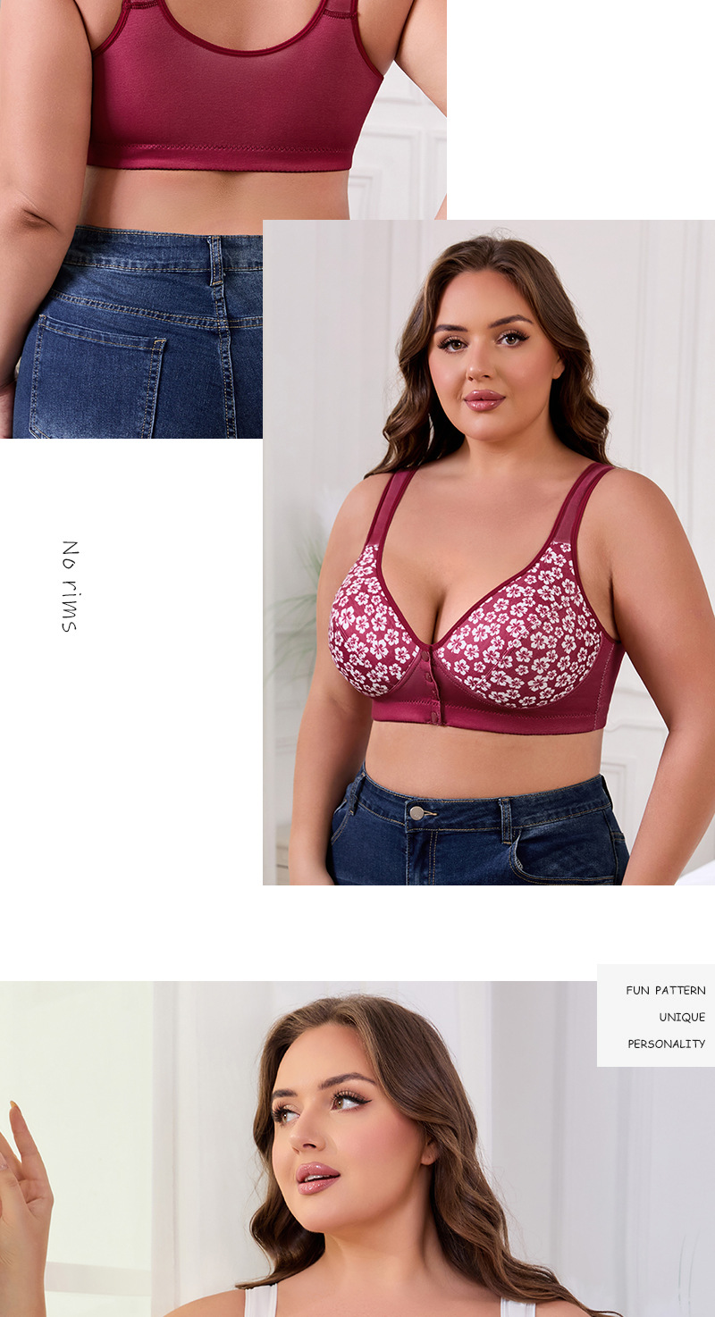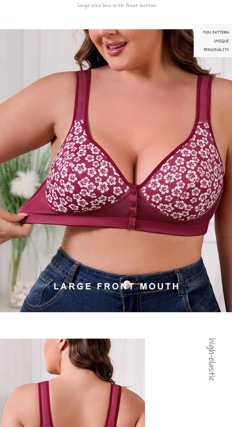 0XL-6XL бюстгальтер с передней застежкой, популярный европейский и американский размер, без ободов, стиль жилета, принтованный бюстгальтер большого размера