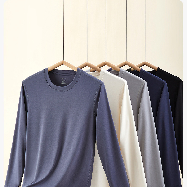 Термальный базовый слой для мужчин, тонкий круглый вырез, длинный рукав, 100 штук, для осени и зимы