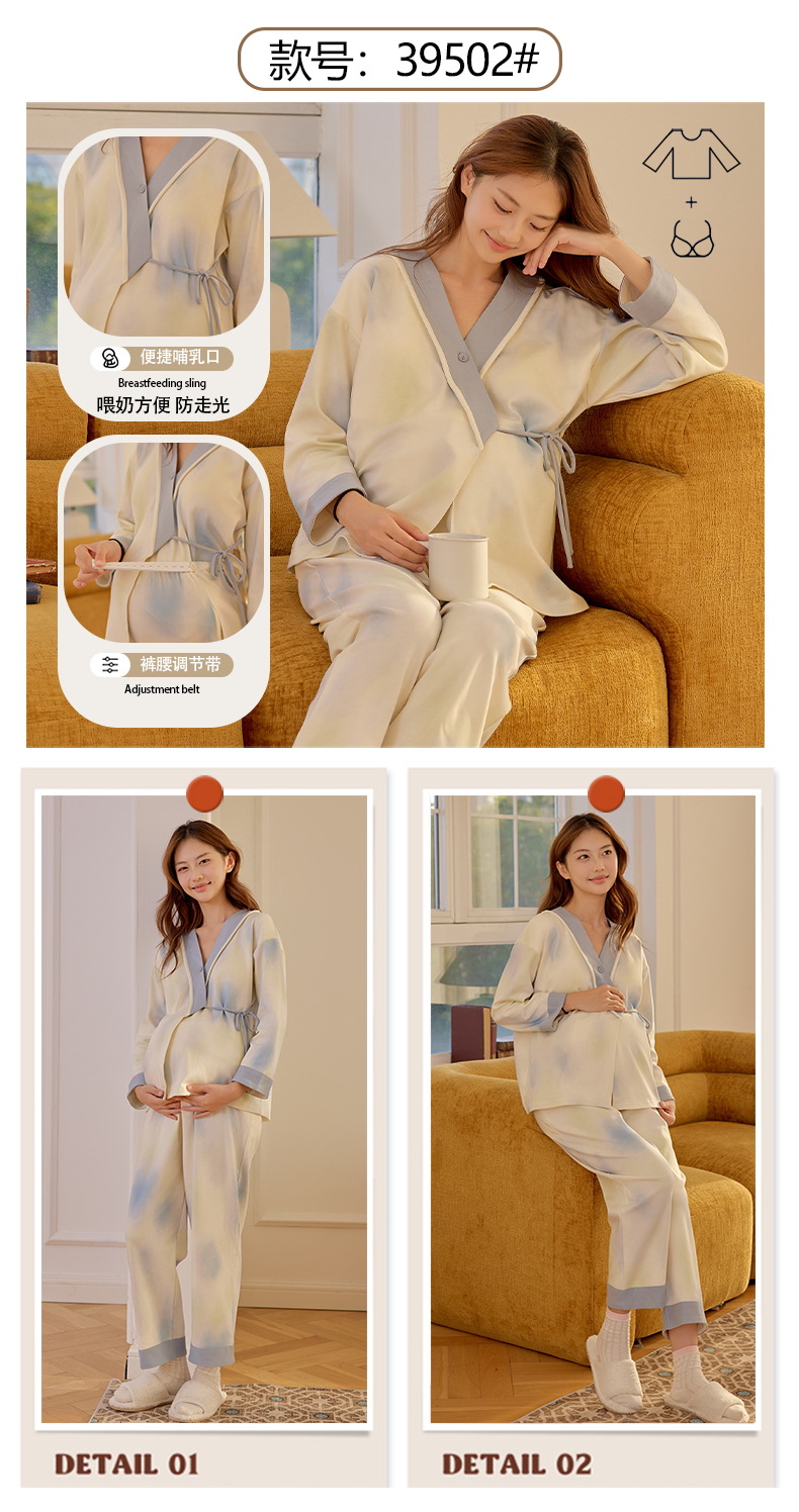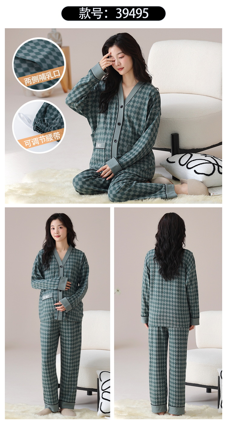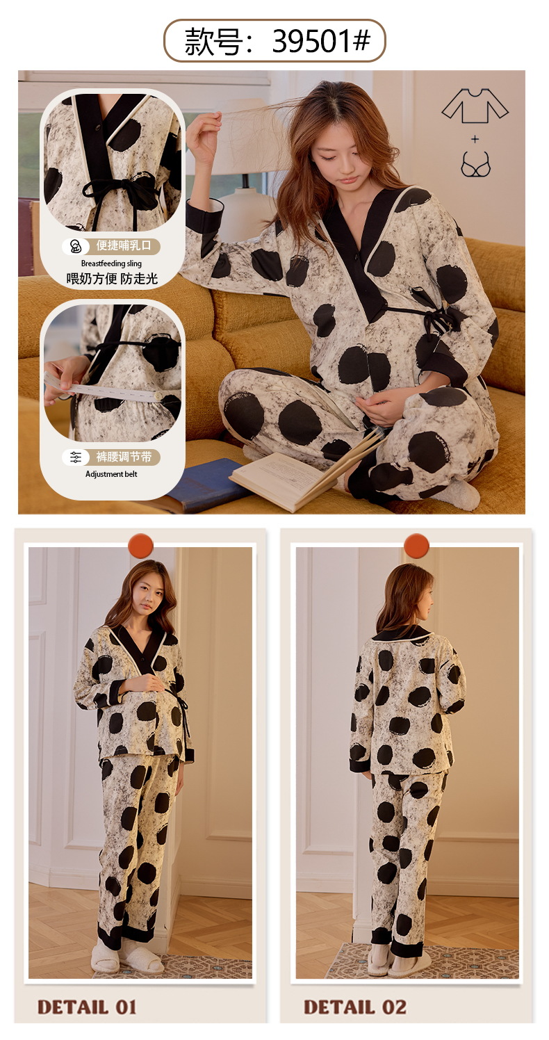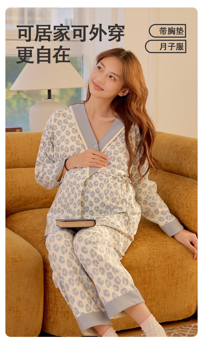 Послеродовая одежда с прокладками для груди на осень и зиму, пижамы большого размера для беременных, комплект одежды для послеродовых женщин