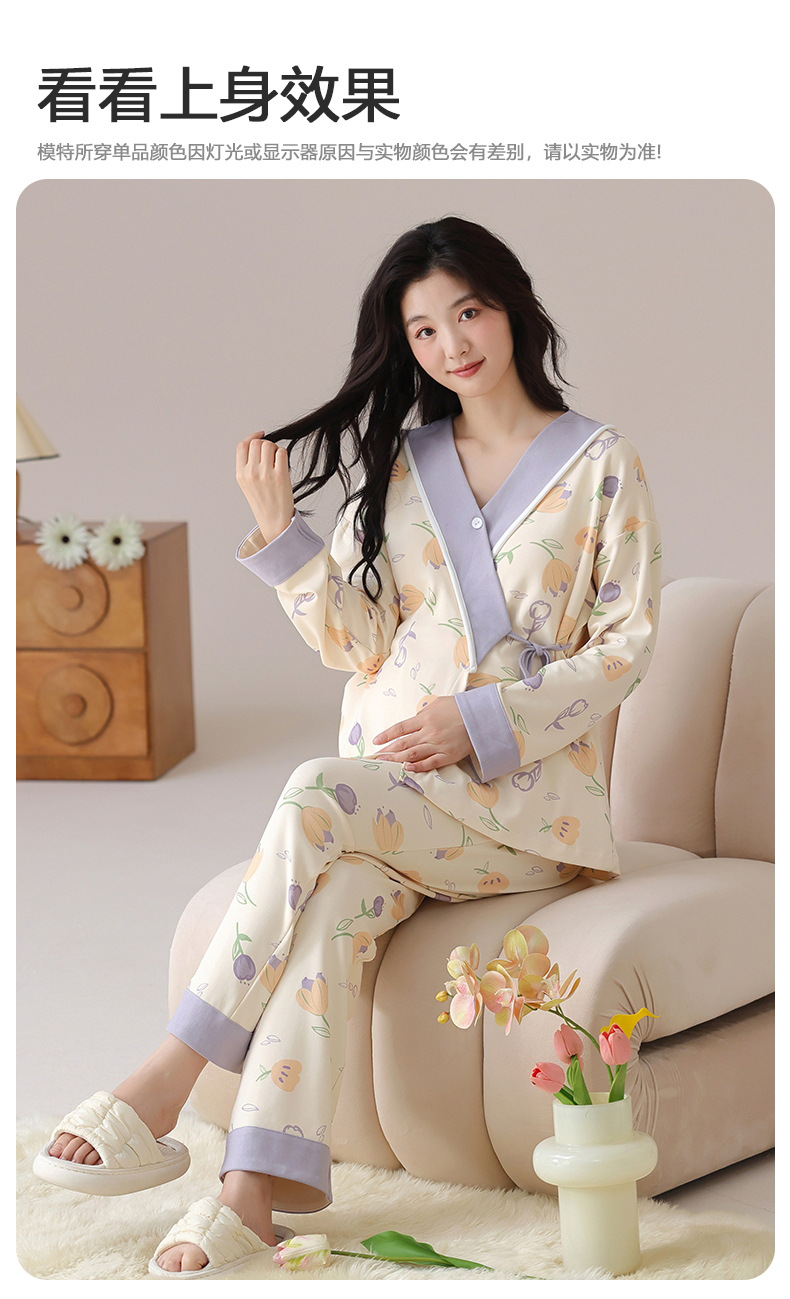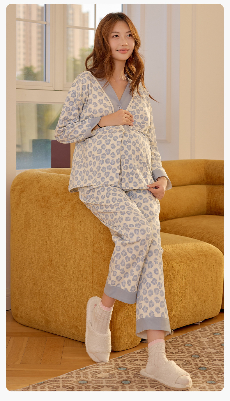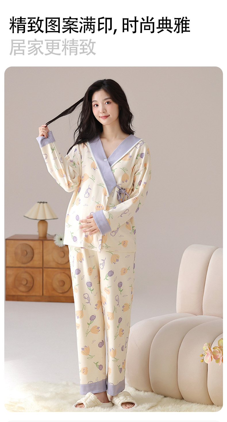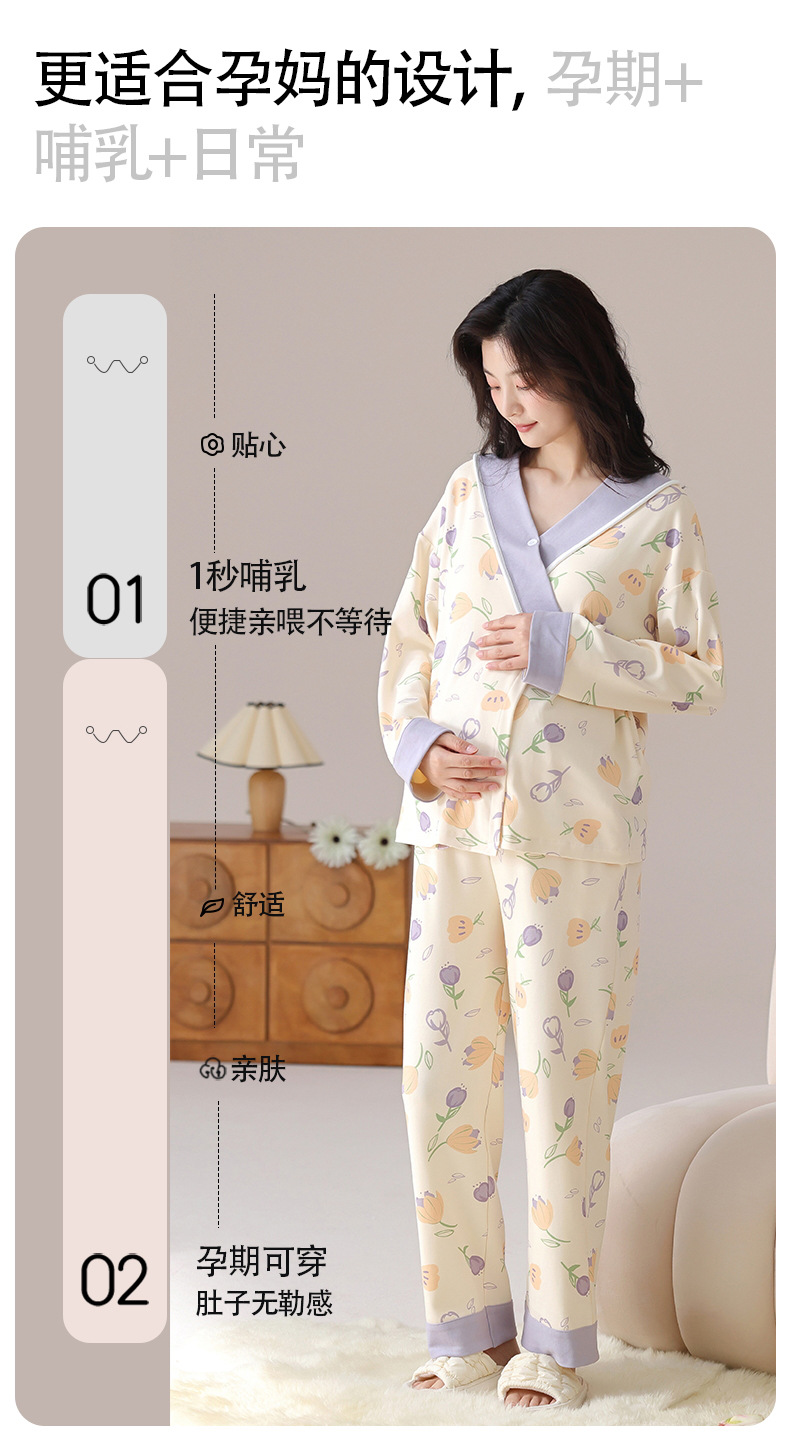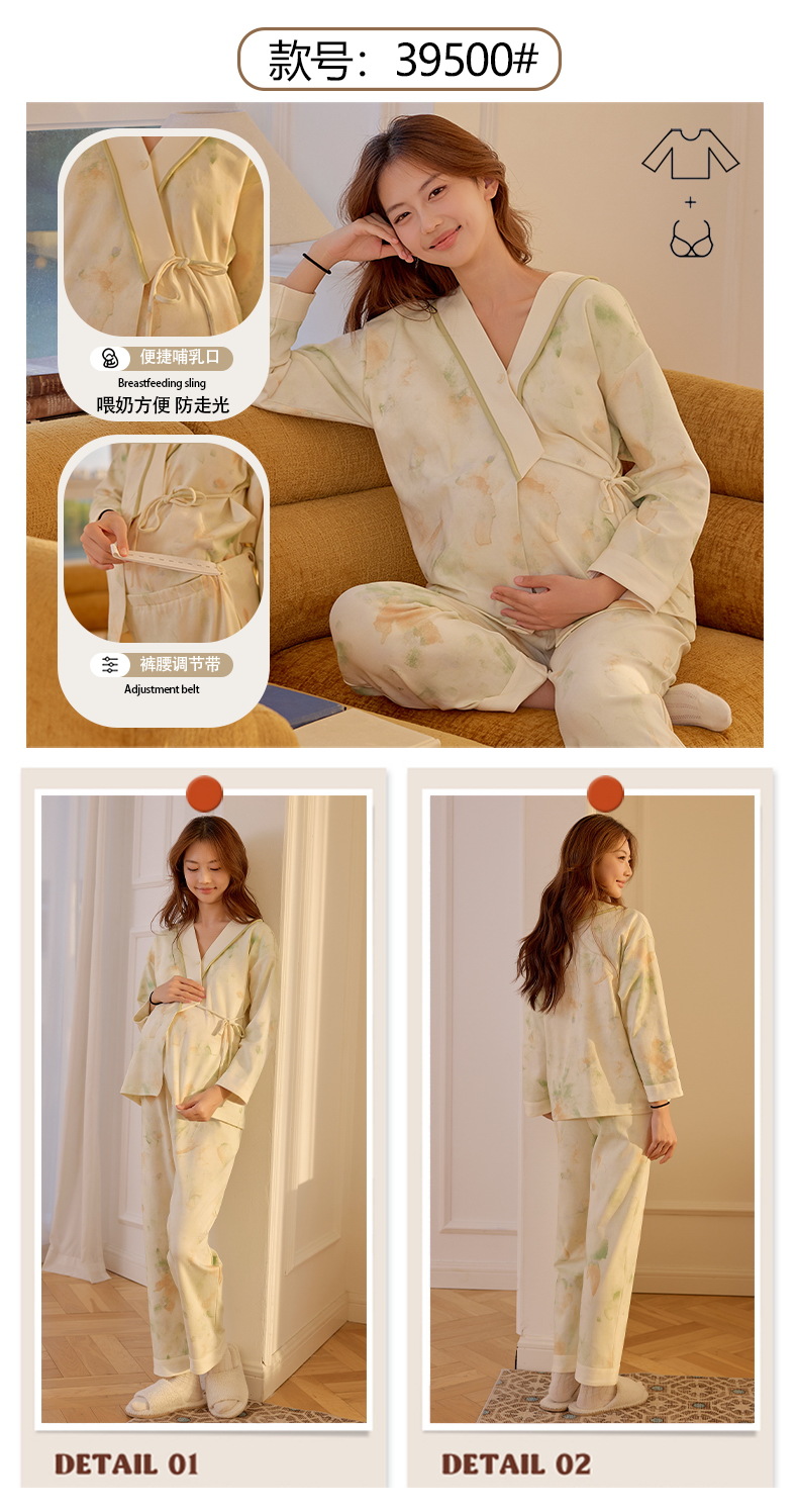 Послеродовая одежда с прокладками для груди на осень и зиму, пижамы большого размера для беременных, комплект одежды для послеродовых женщин
