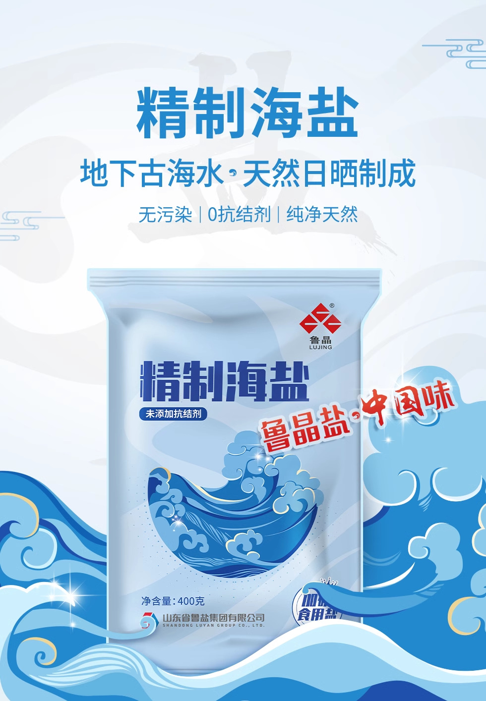 Государственное предприятие производит рафинированную морскую соль Lu Jing 400г, оптовая упаковка 50 пакетов, йодированная пищевая соль, соль-специя