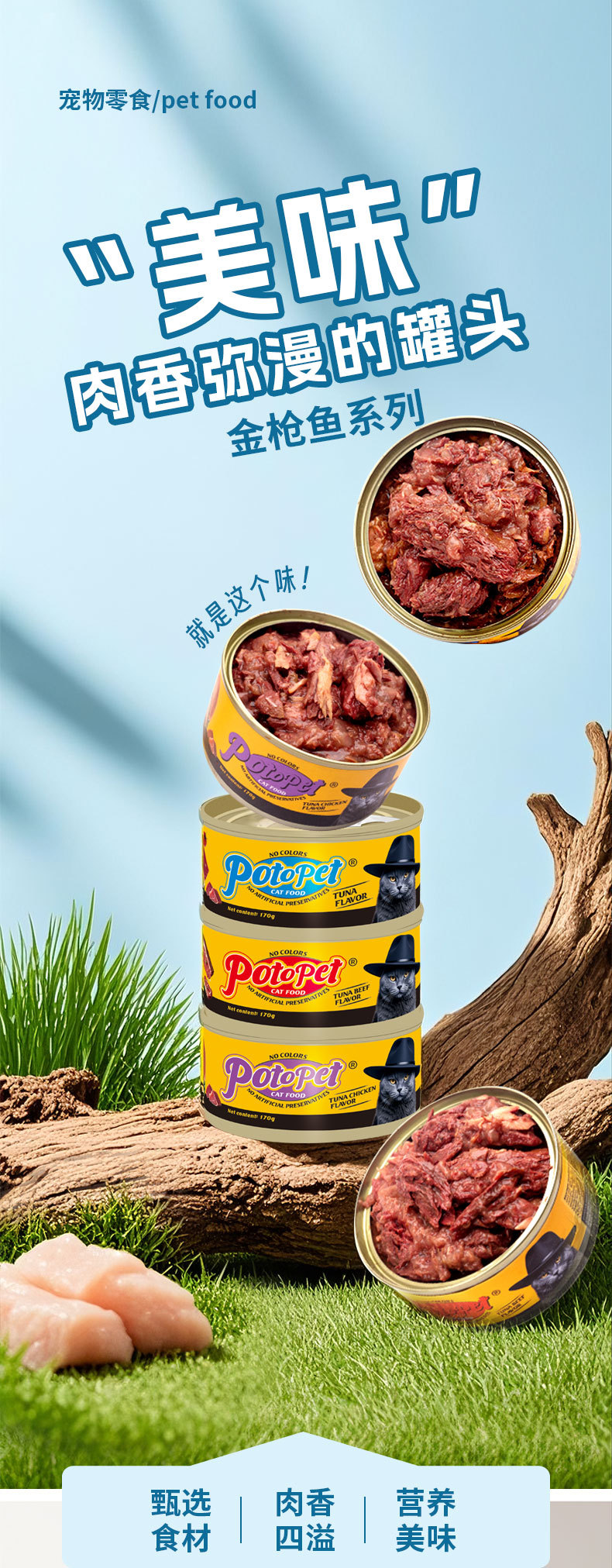 Potopet английские консервированные лакомства для кошек оптовый производитель влажный корм тунец 170г консервированный