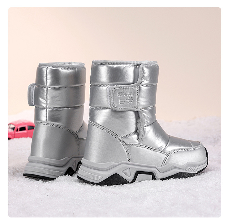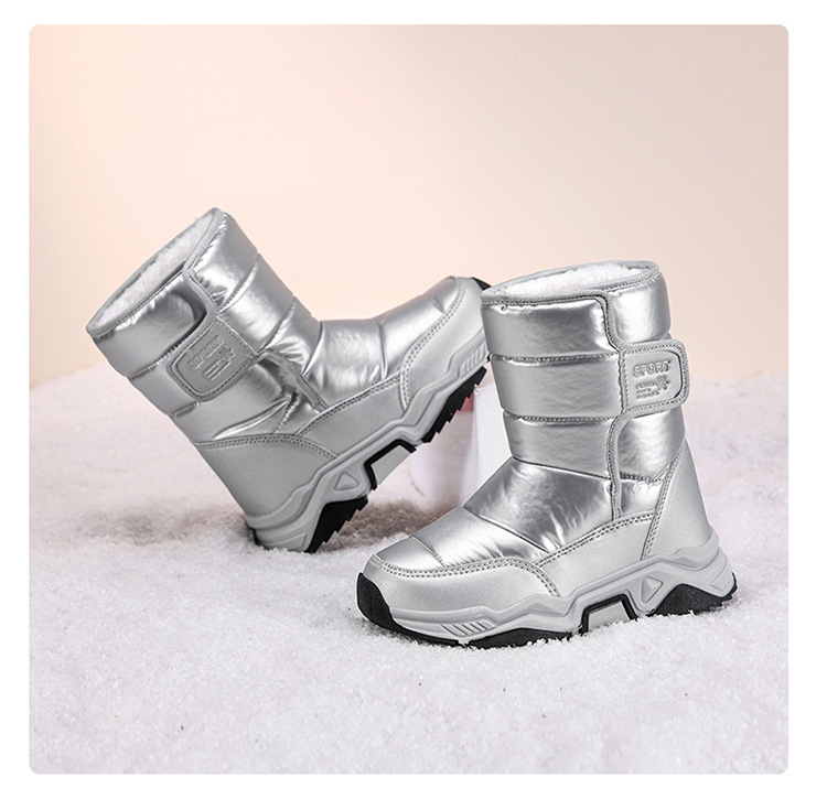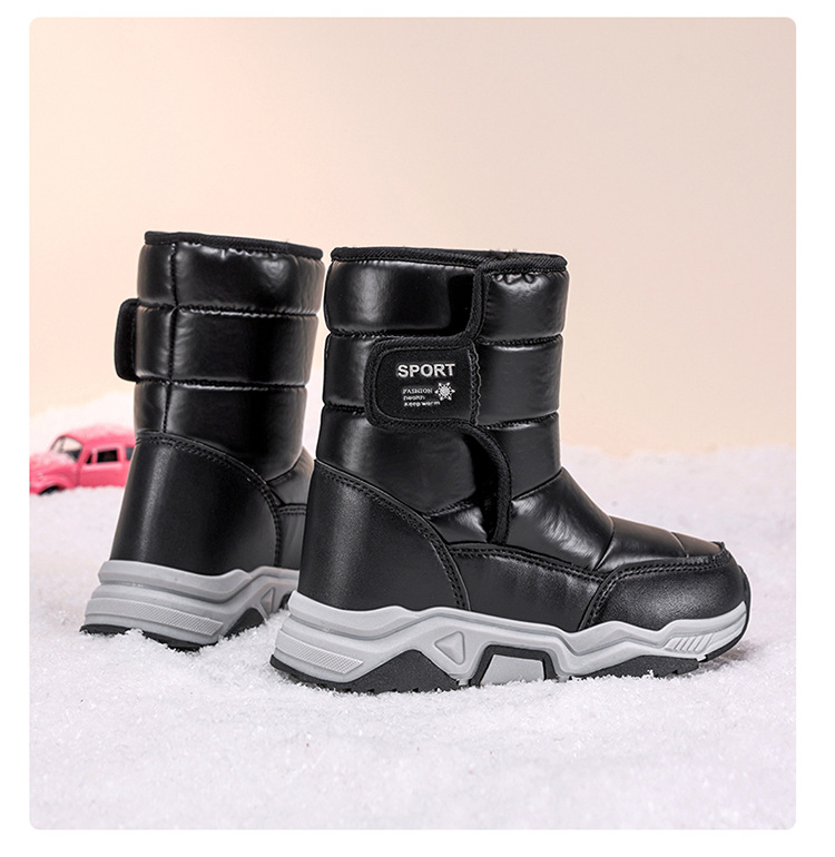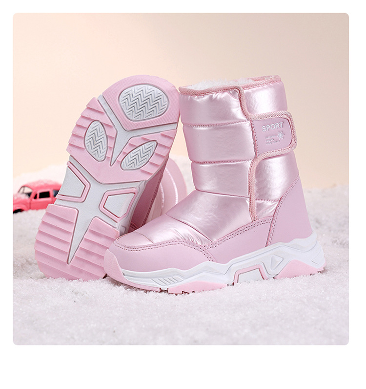 Детские зимние сапоги, хлопковые для девочек, новый стиль, с флисовой подкладкой, утолщенные и теплые, уличные ботинки для детей, большие хлопковые сапоги с северо-востока