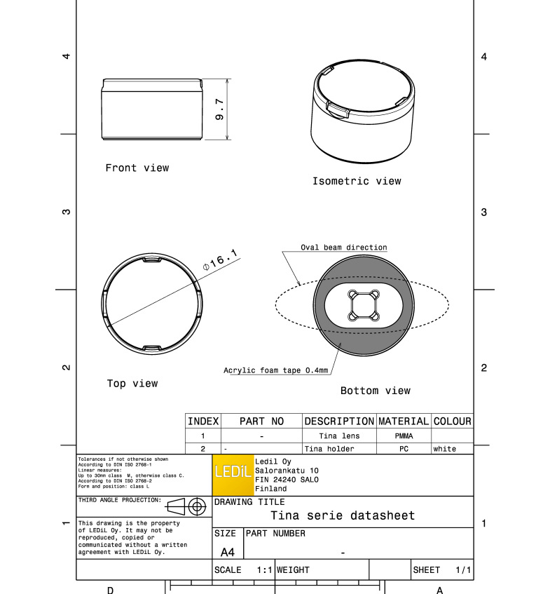 Линза Ledil Fa10887_Tina-Rs светодиодная линза и компоненты