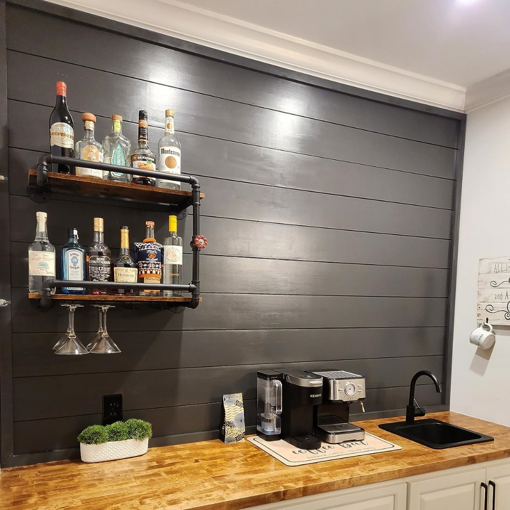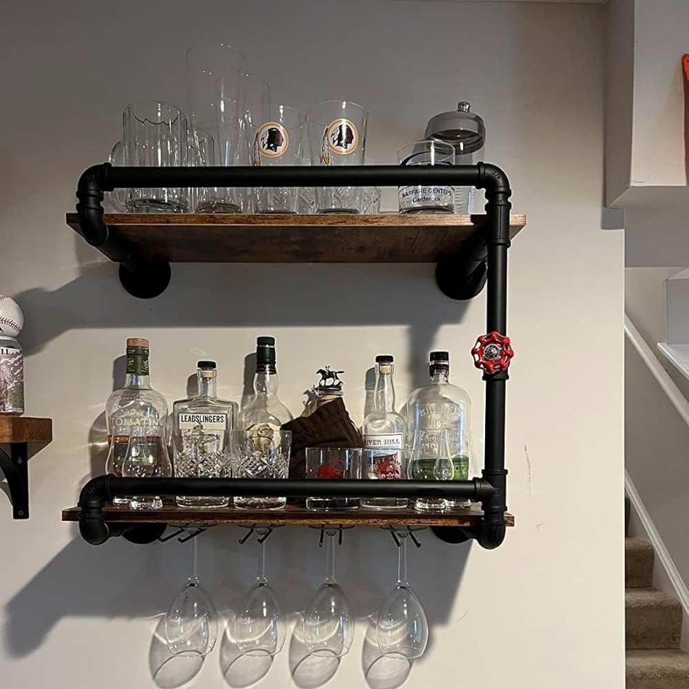 Индустриальный настенный стеллаж для вина, металлический висячий стеллаж для вина, плавающий барный стеллаж, держатель для бутылок, деревянная полка, настенная полка
