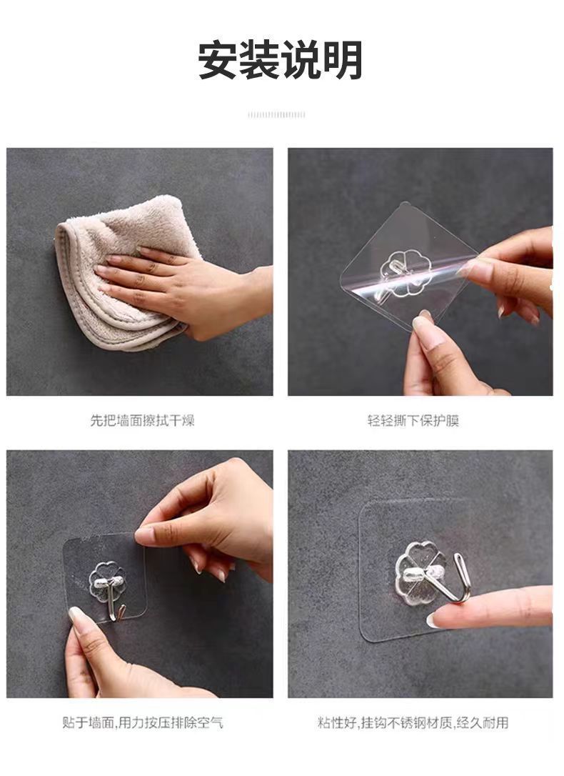 Крючок, без сверления, с сильным клеем, прочный, цветочный узор, без следов, для двери, прозрачная пленка