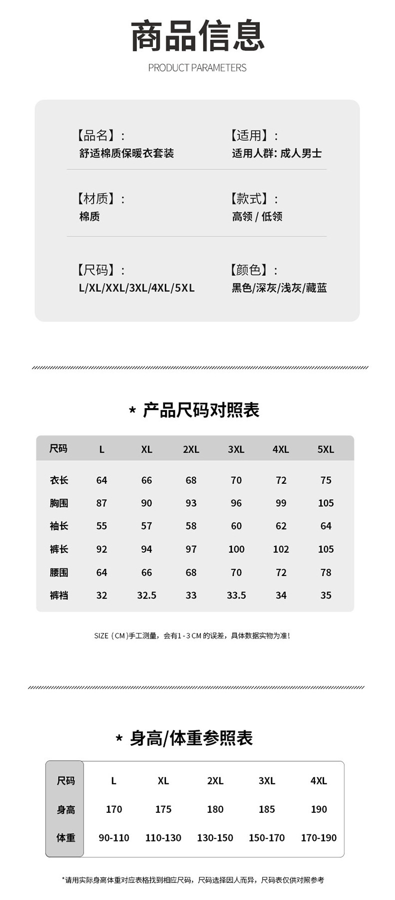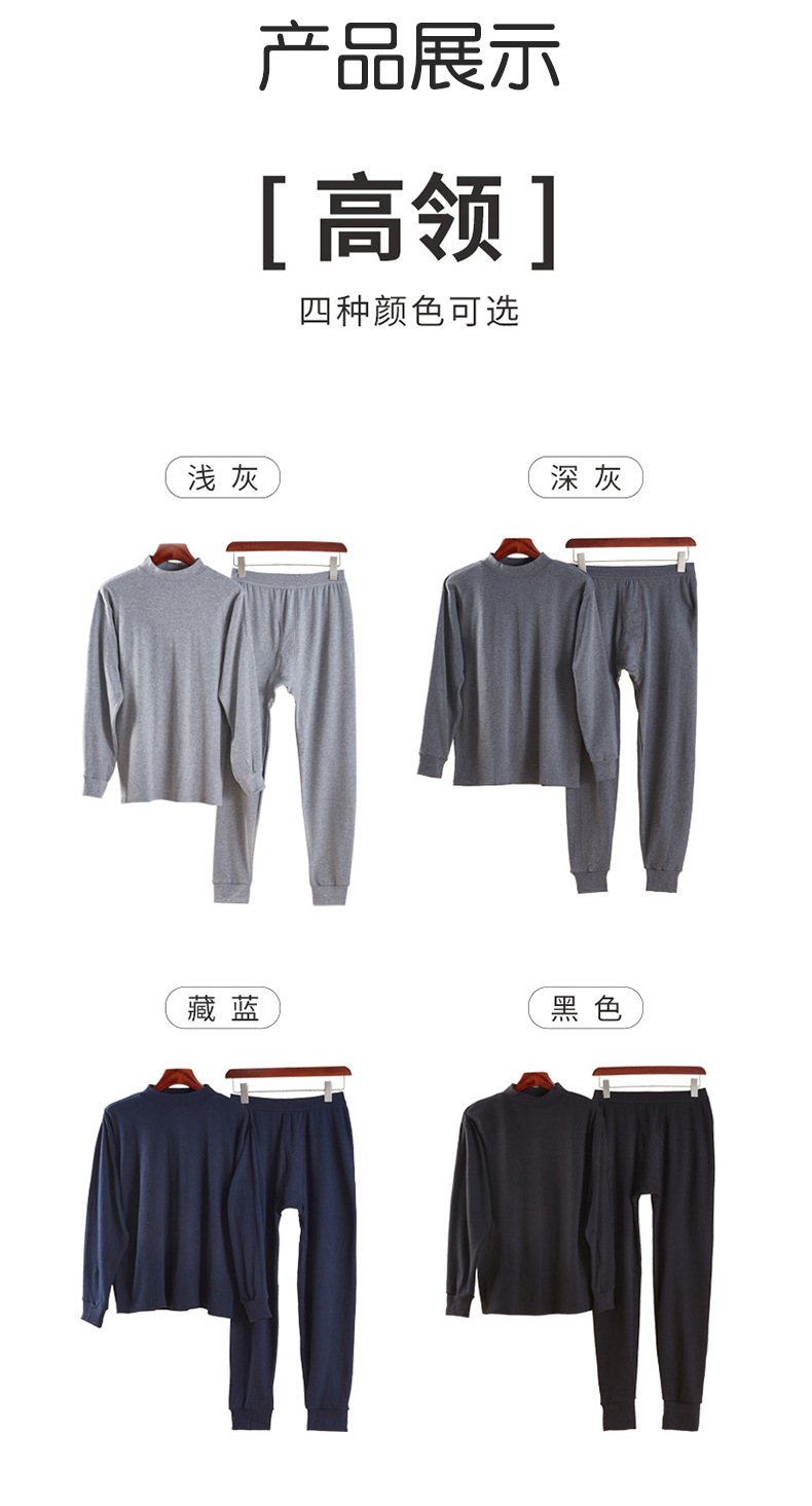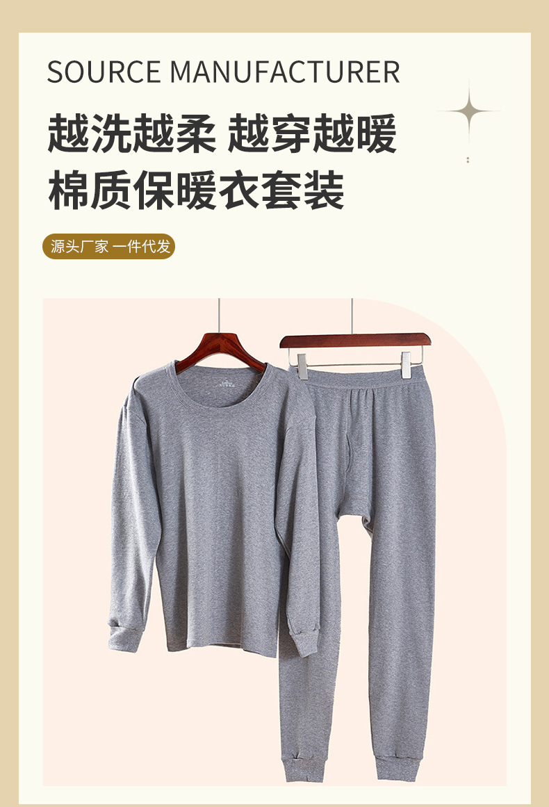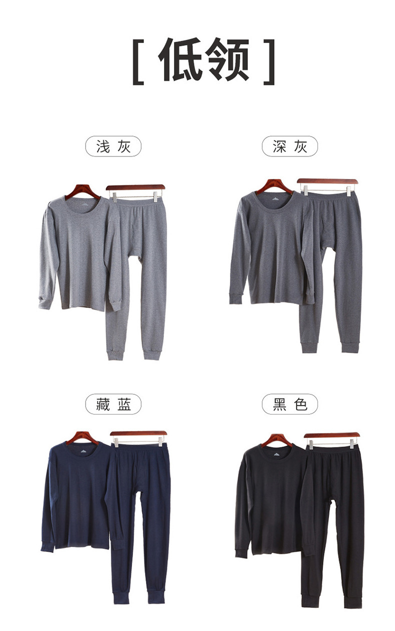 Комплект термобелья для мужчин из чистого хлопка, тонкий базовый слой с круглым вырезом, полный хлопковый свитер для осени и зимы
