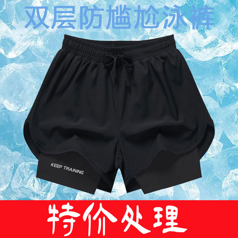 Новые мужские плавки фитнес дышащие спортивные двойного слоя антистыд спортивные пляжные штаны шорты