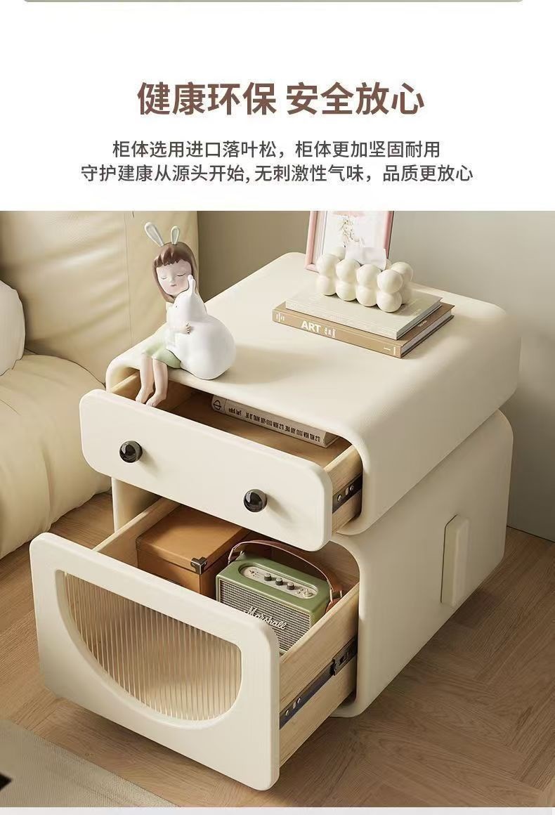 Кремовая прикроватная тумбочка из массива дерева для детей, современный креативный французский боковой шкаф, простой шкаф для хранения в гостиной и спальне
