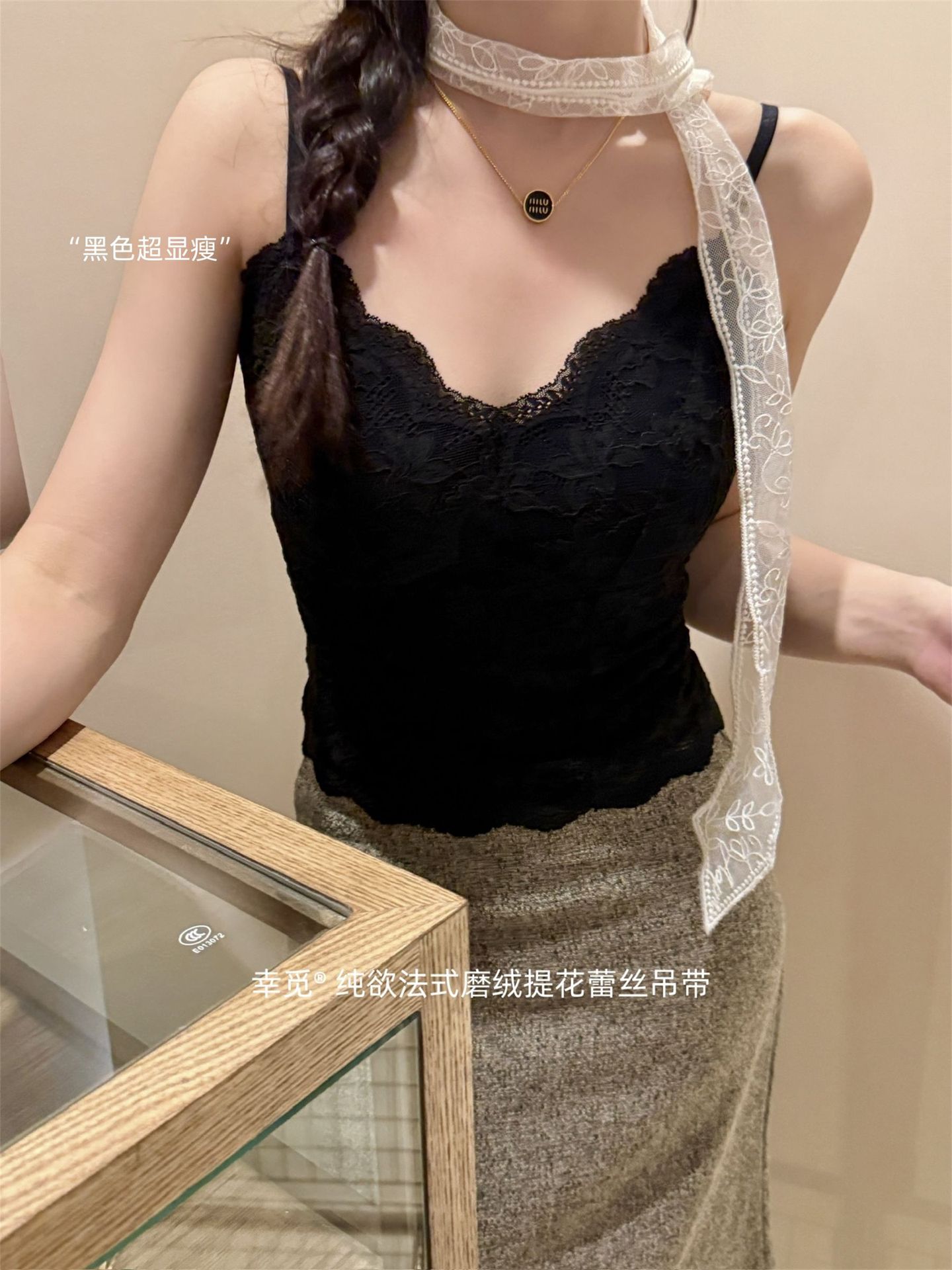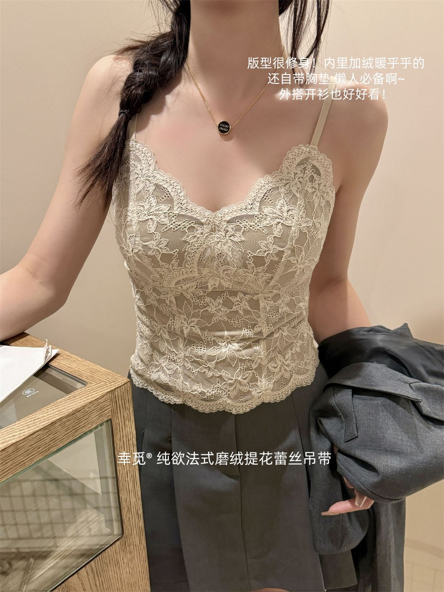 Жилет с начесом осень-зима Lace padded suspender back vest