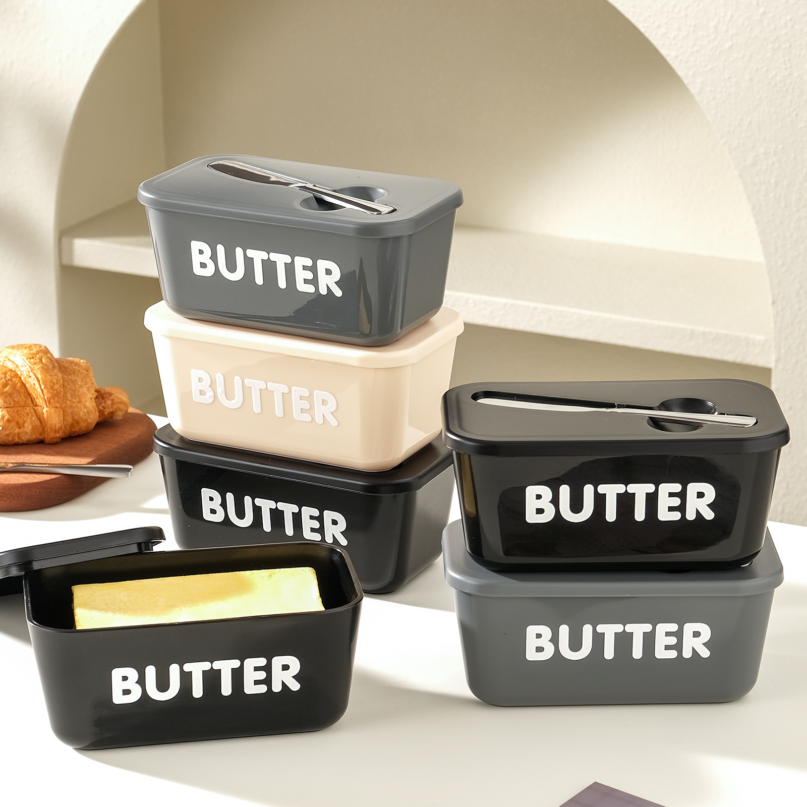 Коробка для масла Amazon с ножом, большая емкость, пищевая пластиковая коробка для сыра, холодильная коробка для масла, блюдо для масла