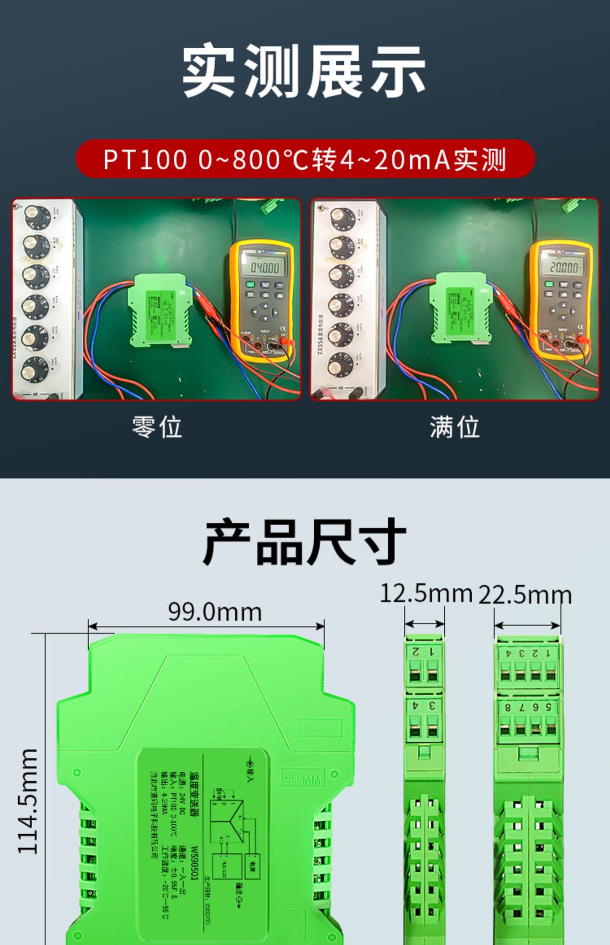 Терморезистор Pt100 рельсового типа Передатчик температуры Сигнальный изолятор на 4-20Ma Аналоговый 0-10V выход