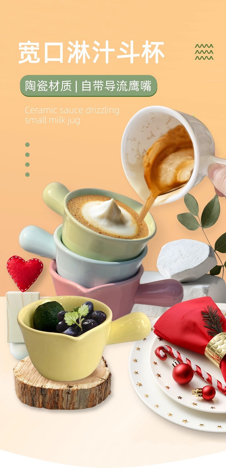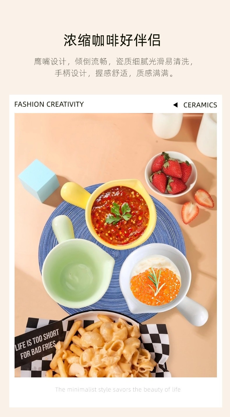 Керамический молочник с ручкой и носиком для домашнего использования, маленький соусник для приправ, соуса для макания, соуса для наливания, молочник для эспрессо, унция