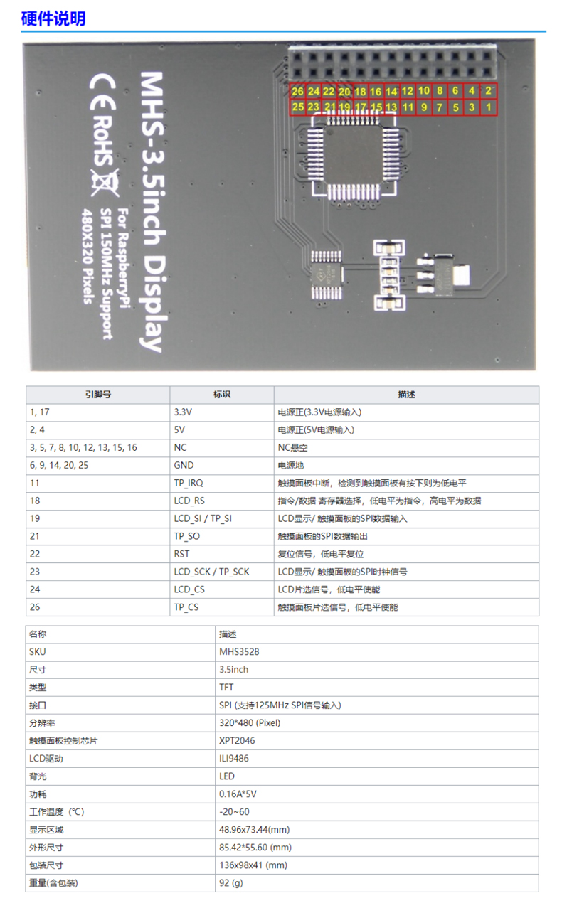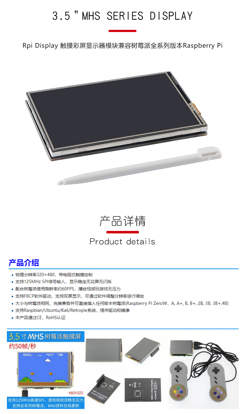 3.5 дюймовый Mhs Rpi дисплей Сенсорный цветной экран Монитор совместим с Raspberry Pi полная серия версия