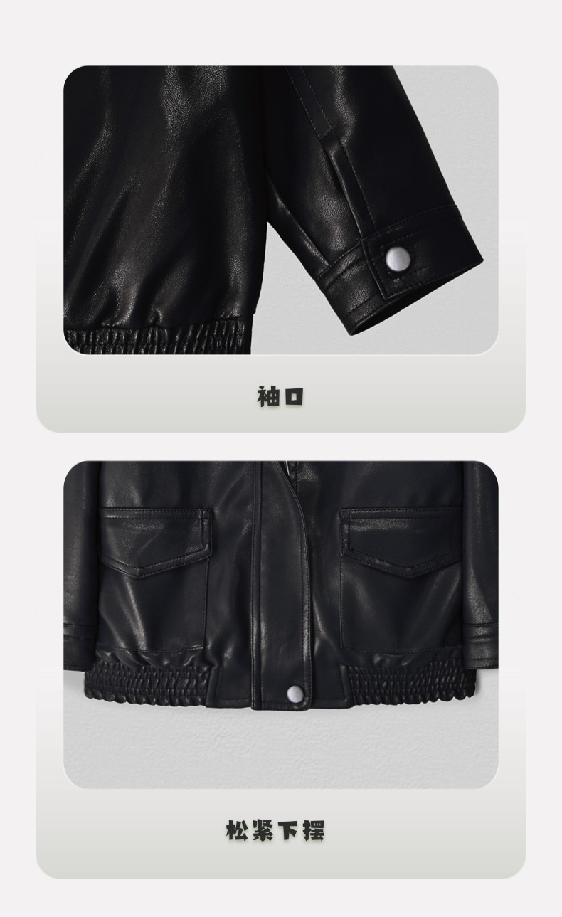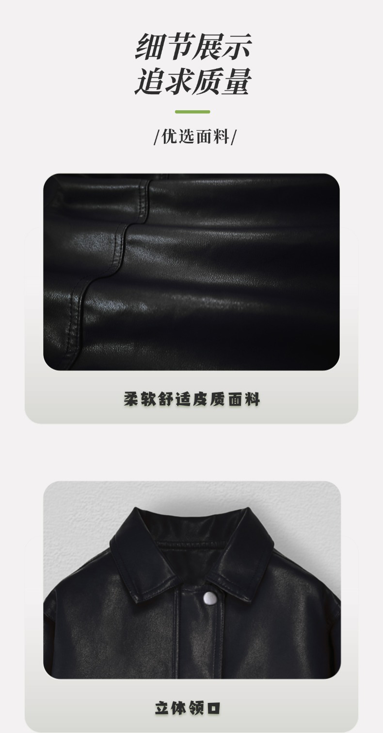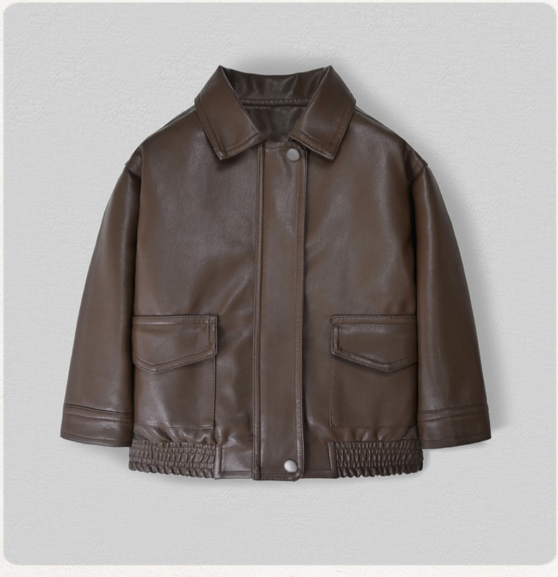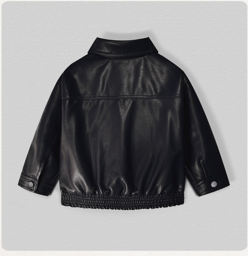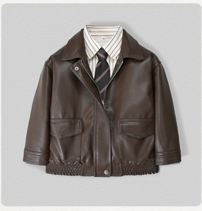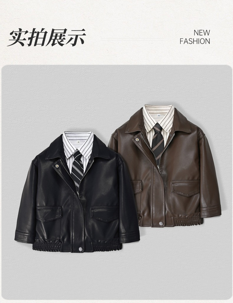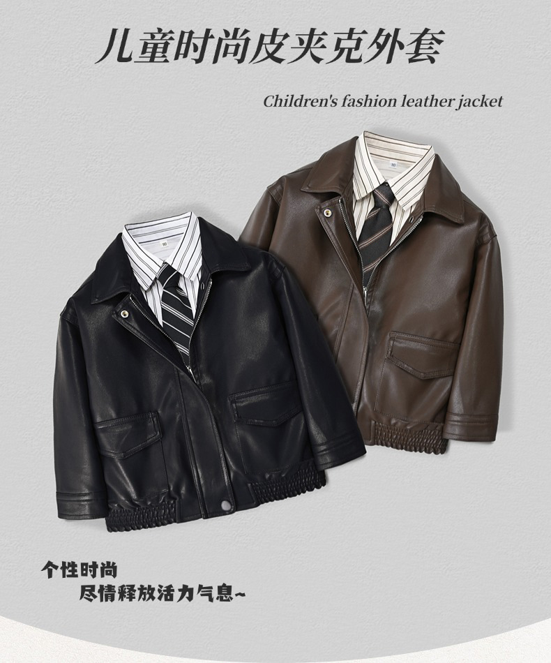Костюм для мальчиков, осень 2025, новая кожаная куртка, корейский стиль, стильный однотонный кожаный жакет и брюки, комплект из двух предметов