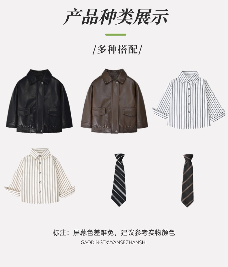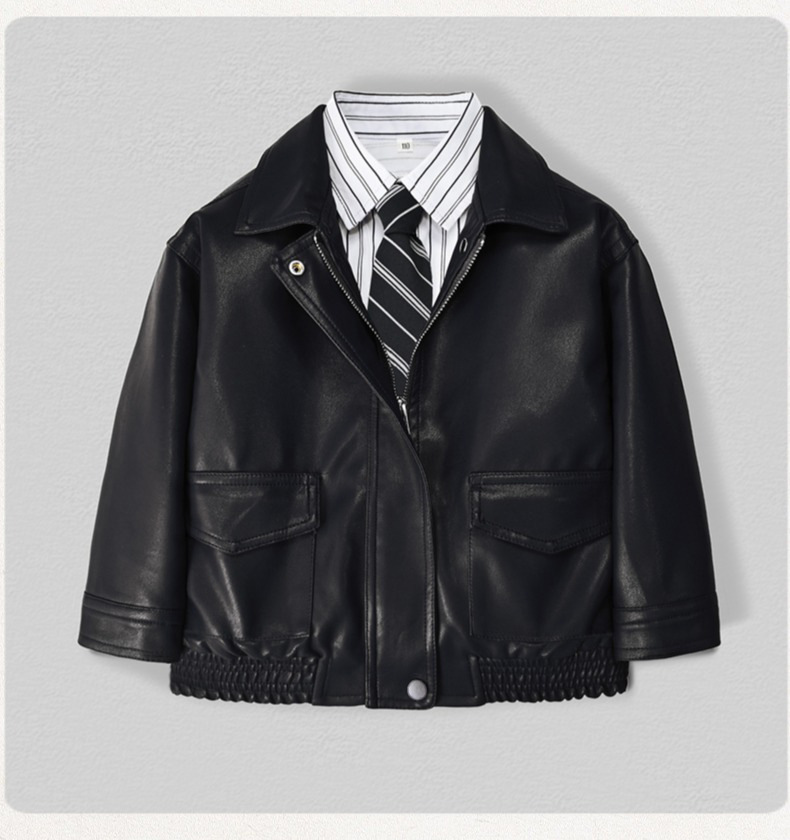 ![]() | Black leather jacket + white striped long-sleeved shirt + black pattern tie | 120cm | ¥75.0 / ≈ 905 ₽ | 490 | 5920782496217 | |