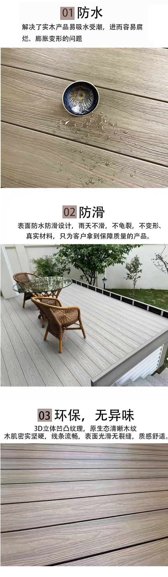 Пластиковый деревянный пол Wpc для уличного двора, водонепроницаемый и антикоррозийный, с рифлением, для использования на улице