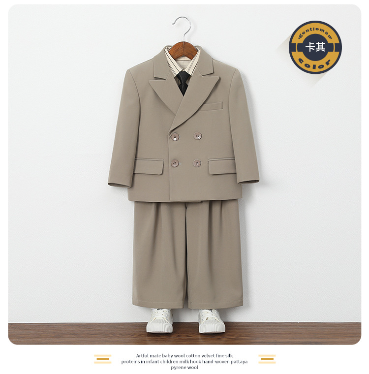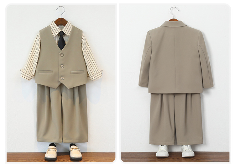 ![]() | Suit style + twill tie: khaki 5-piece set (93069 pure cotton blue long sleeve shirt + jacket + vest + trousers + brown striped tie) | 130cm, recommended weight 22.5-27kg | ¥119.74 / ≈ 1 442 ₽ | 170 | 5955014657838 | |