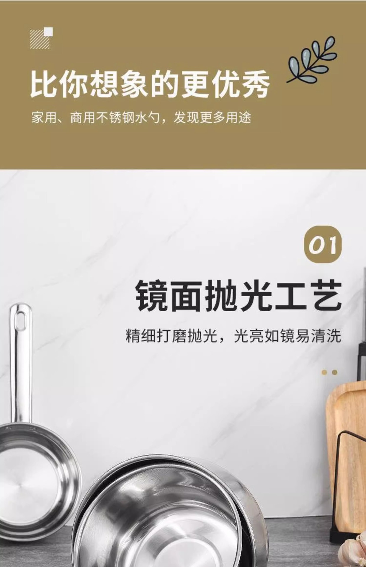 ![]() | Stainless steel color | Extra thick stainless steel water spoon 18cm | ¥3.9 / ≈ 47 ₽ | 9651 | 5920037445089 |