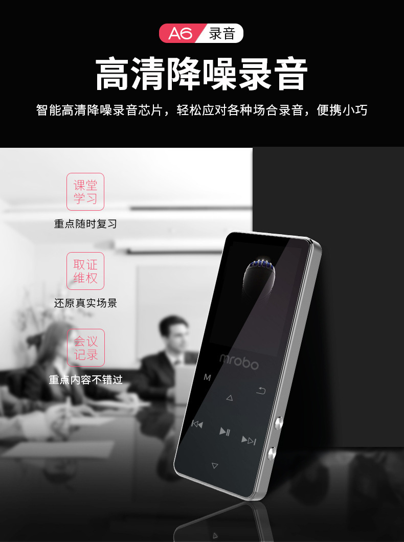 Mrobo Meibo A6 Bluetooth Mp4 Сенсорный Mp3 Портативный Музыкальный плеер Walkman Электронная книга Студенческий