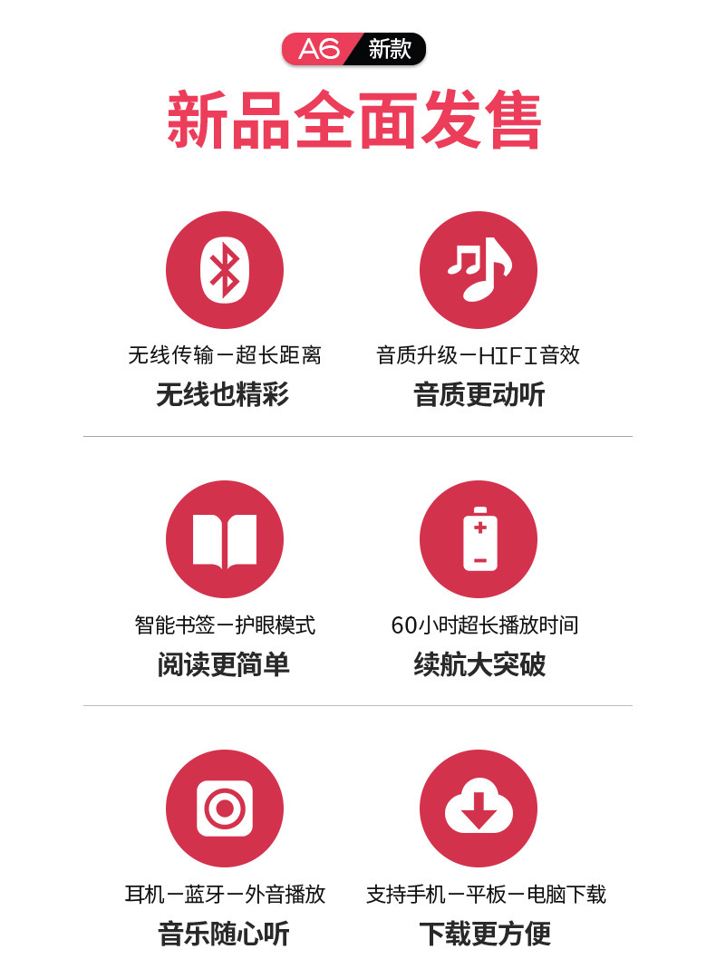 ![]() | A6 (bluetooth) touch button version | 8GB | ¥80.0 / ≈ 974 ₽ | 1000 | 6085823315702 | |