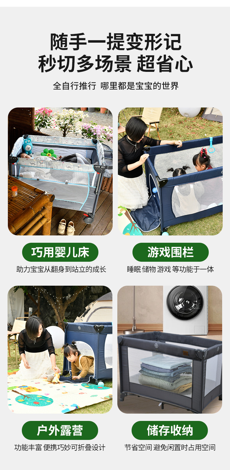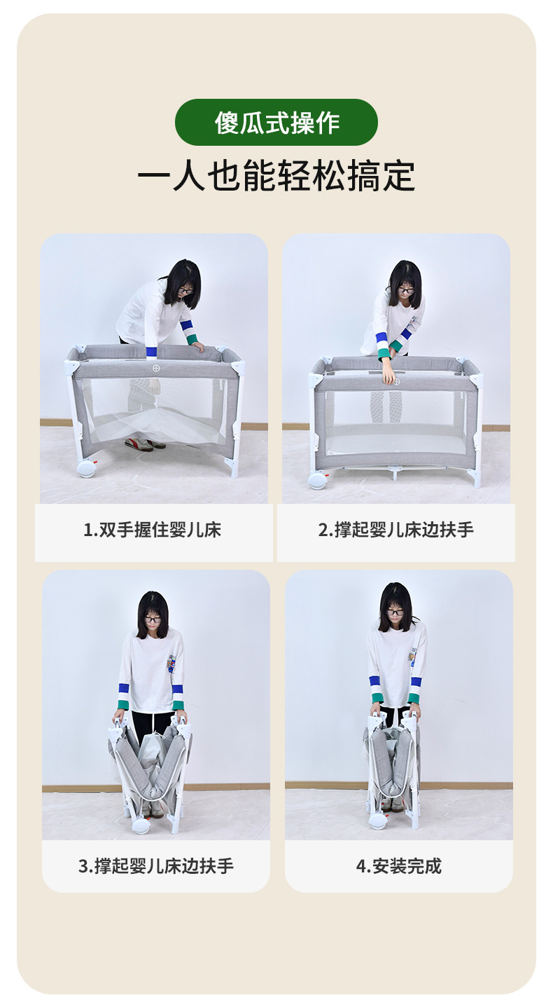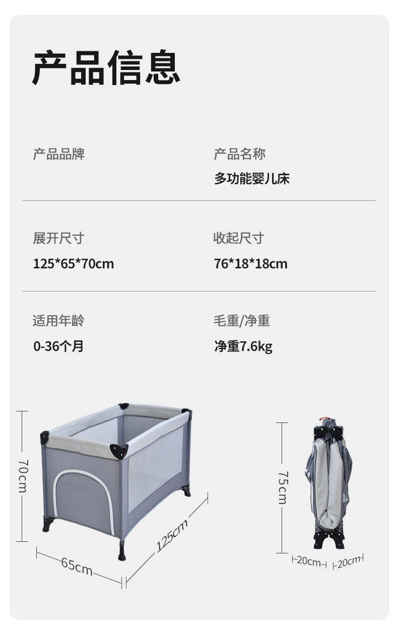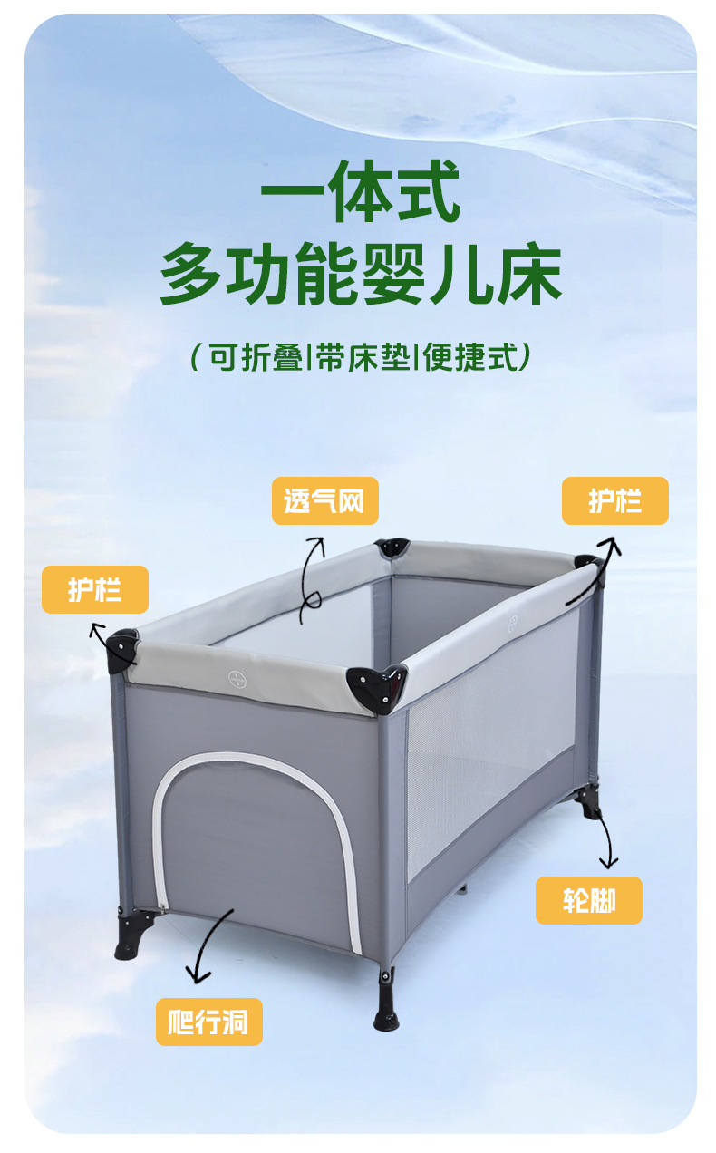 功能:可折叠,可移动,可拆卸,婴儿床,游戏围栏,换尿布台