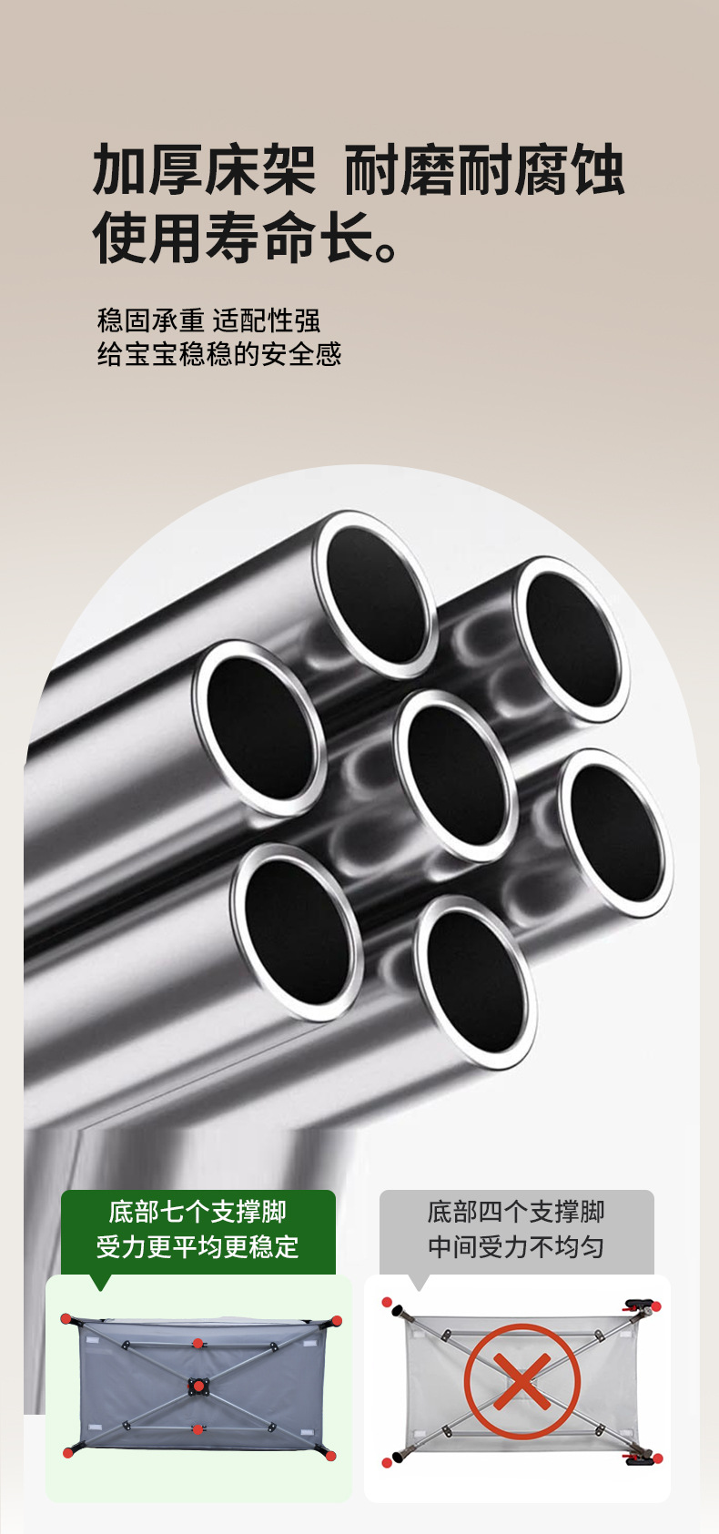 手提袋、拉链二层(挂钩二层大床)、连接固定带、摇摆杆、置物架、音乐玩具架、换尿布台、蚊帐(高挂蚊帐,遮阳拱形蚊帐,遮罩蚊帐)