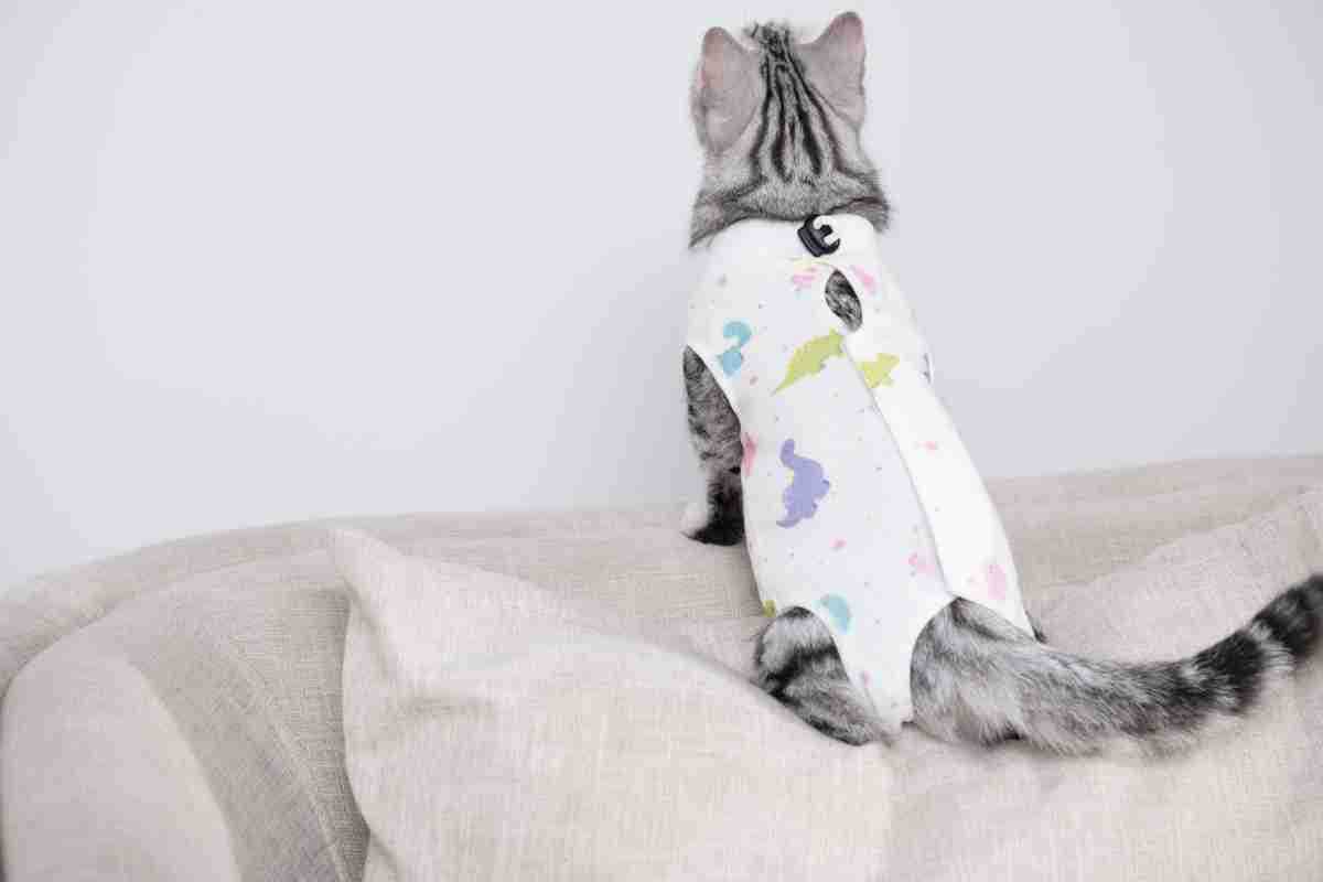 【场合】适用于母猫绝育、手术、断奶、皮肤病期等防止猫咪舔咬感染。猫咪手术恢复服让猫咪穿起来很舒服,很好地保护了猫咪的腹部和皮肤,让猫咪活动时不会感到受阻。它可以更大规模地保护猫咪的伤口,防止猫咪舔舐或抓挠伤口。使用恢复服进行绝育将使您的猫咪保持冷静并缓解压力。