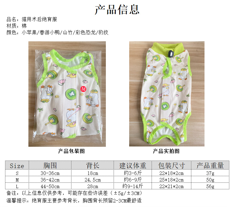 【尺码】S/M/L,请注意受伤后使用的猫咪连体衣需要紧密贴合伤口才能愈合。