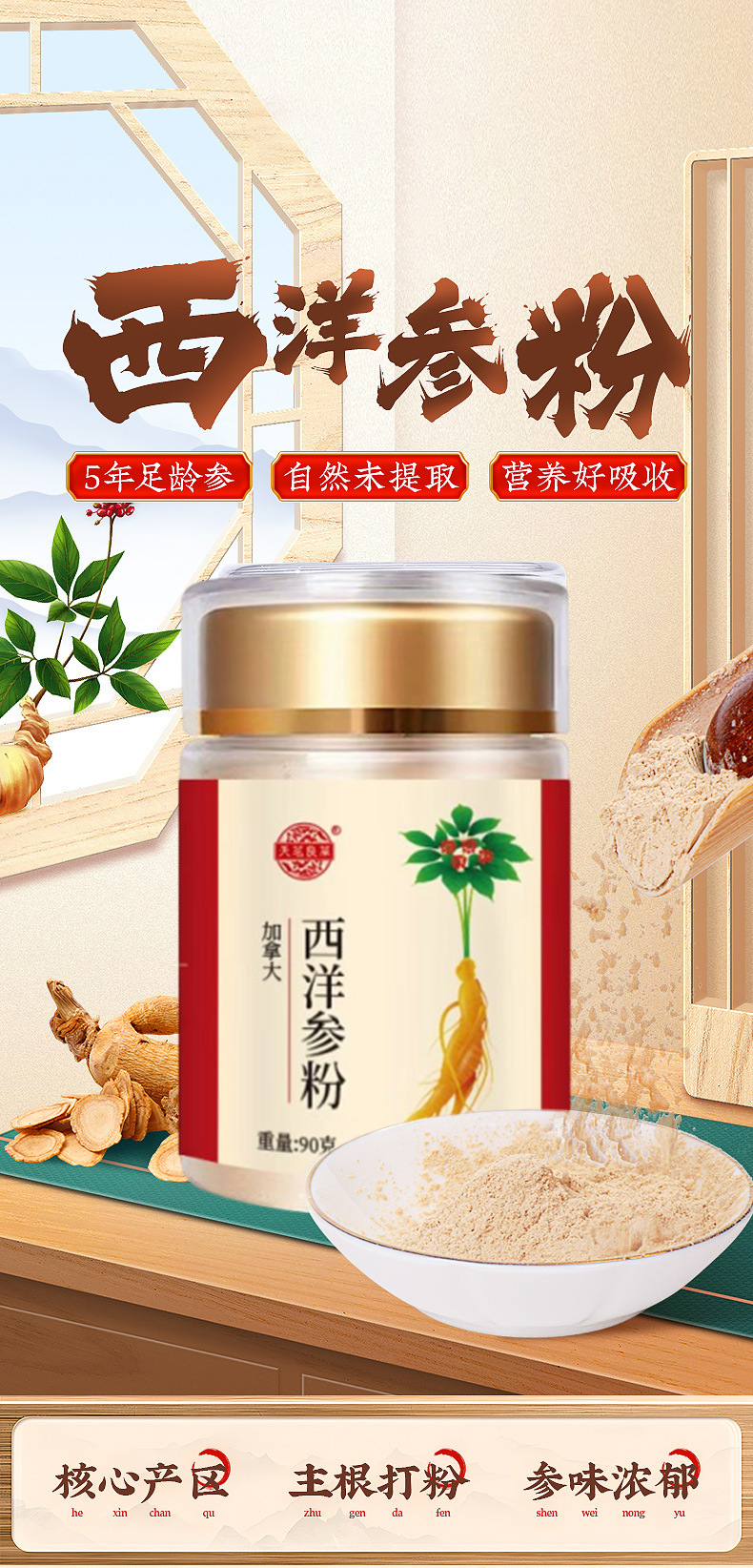 Четыре сокровища порошка медицинских материалов Синьхуа, порошок женьшеня Панакса, порошок американского женьшеня, чистый порошок 90 г, бутылка с порошком салвии и гастродии, свежемолотый мелкий порошок