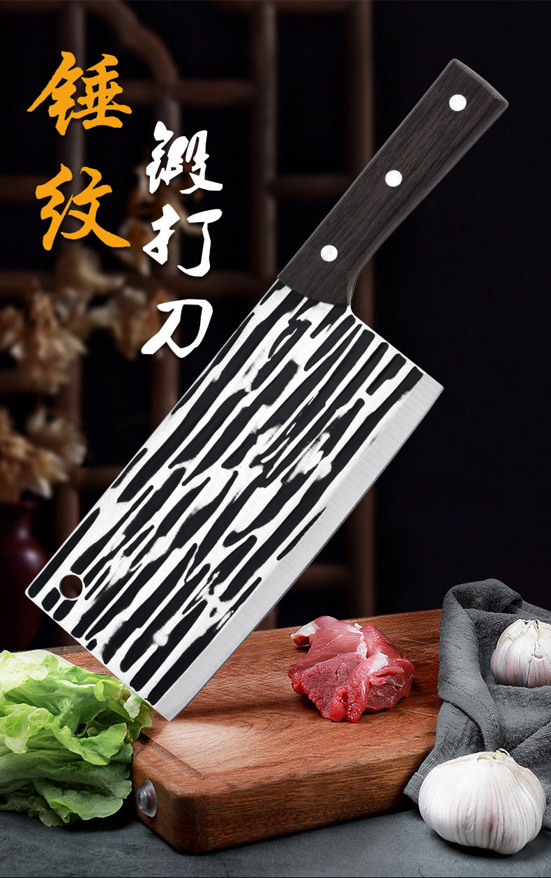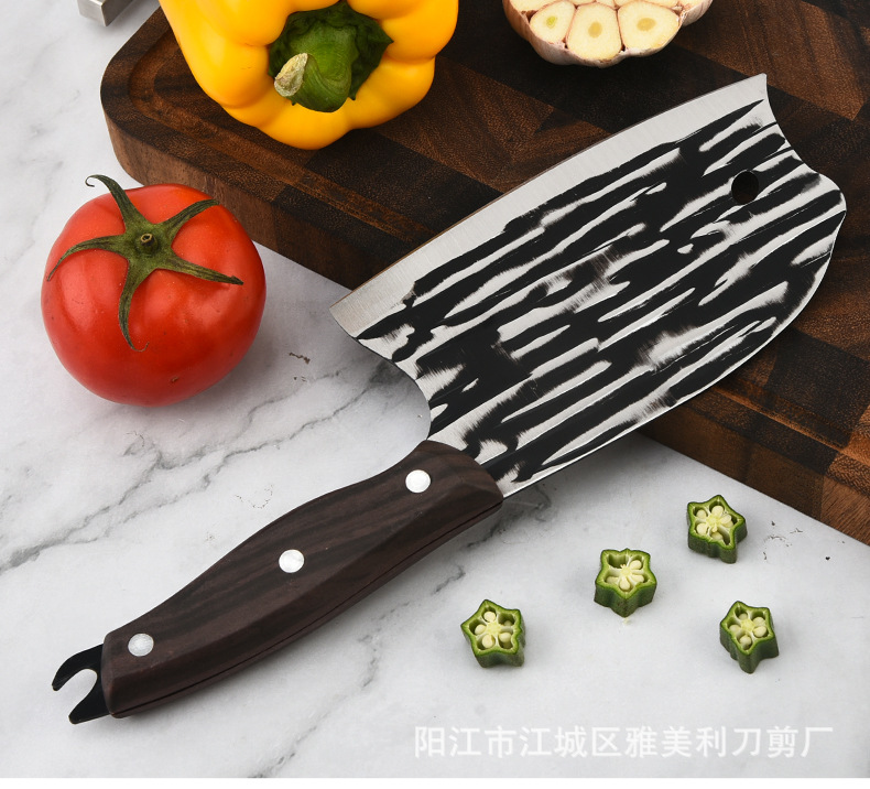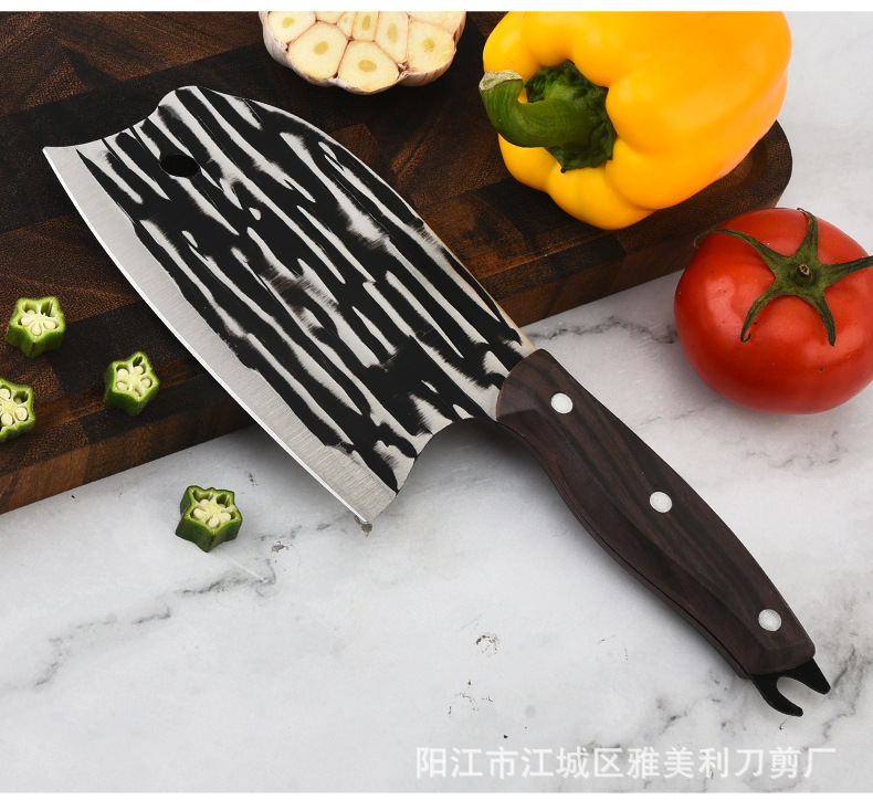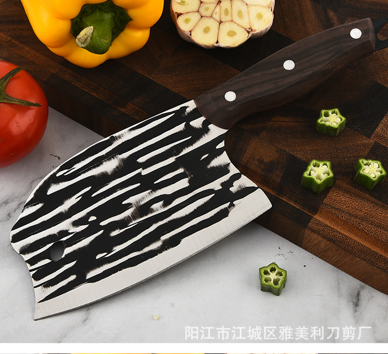 Деревянная ручка, кованый кухонный нож с узором от молота для нарезки овощей, нарезки, рубки, острый универсальный нож для женщин