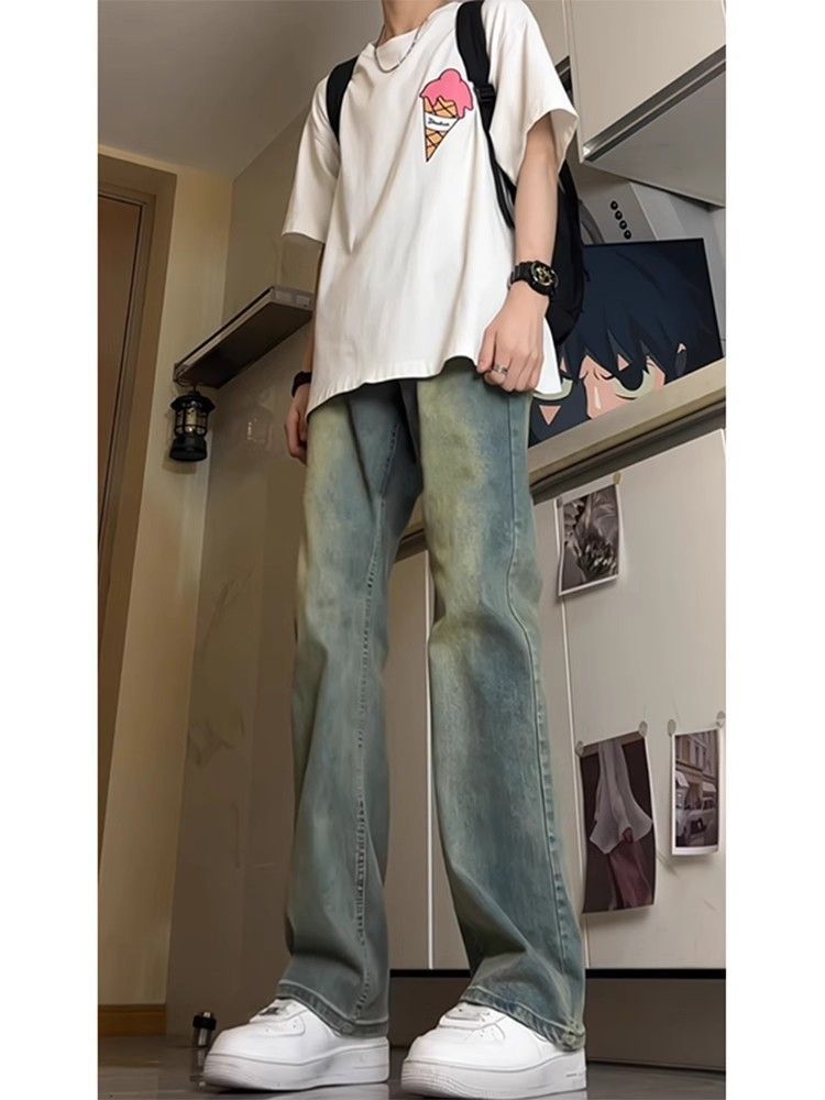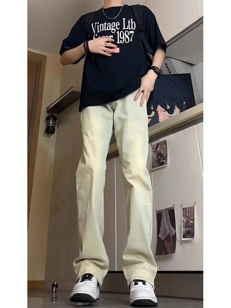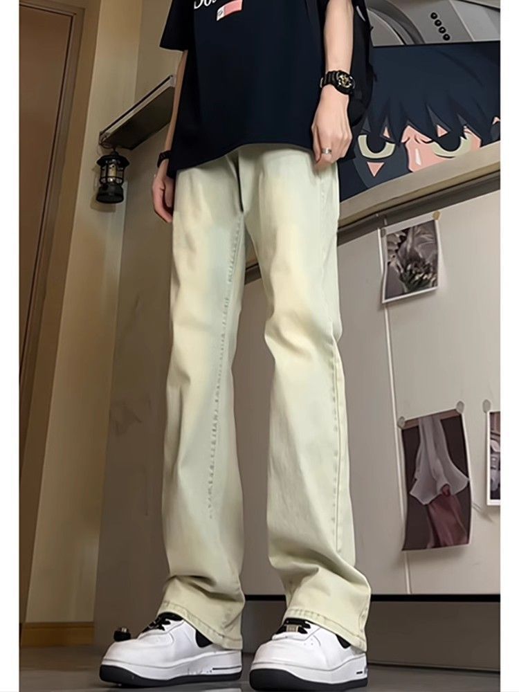 мужские джинсы с расклешением желтого цвета, новинка весна-лето 2025, высокие уличные, облегающая прямая американская модель