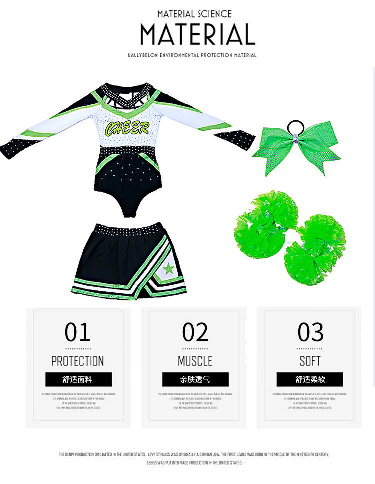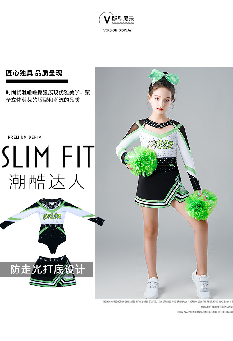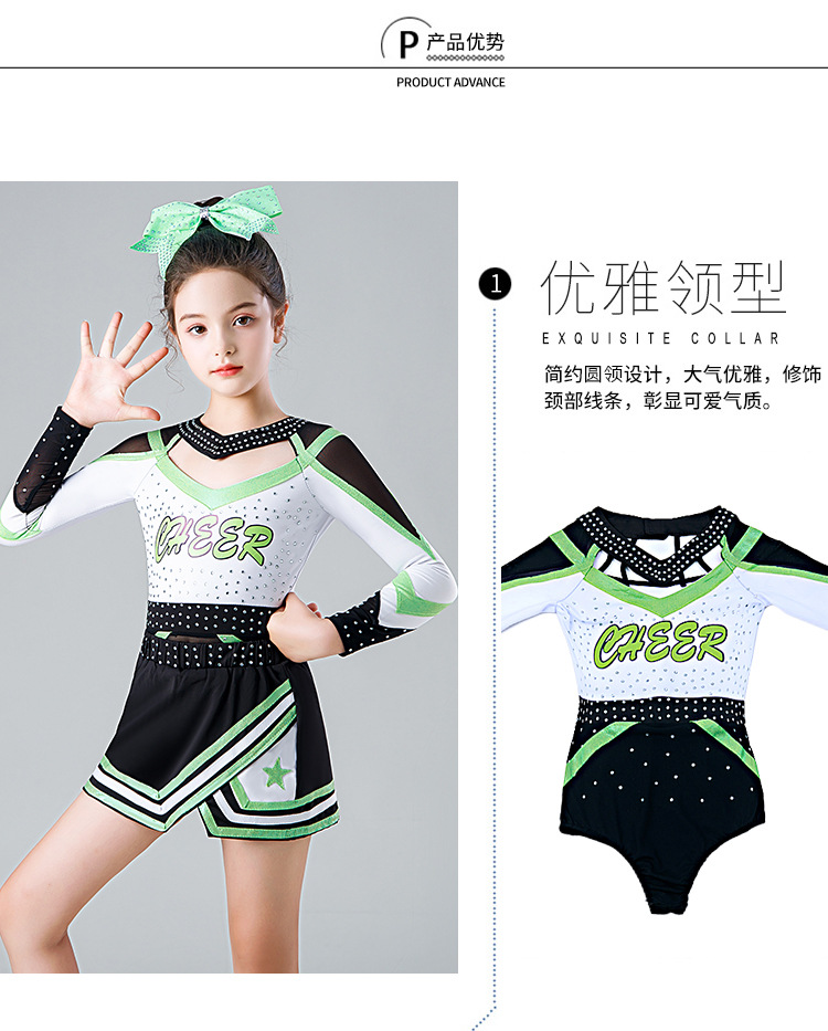 Одежда для выступлений чирлидеров для детей, длинные рукава, новая одежда для выступлений, костюмы для аэробики