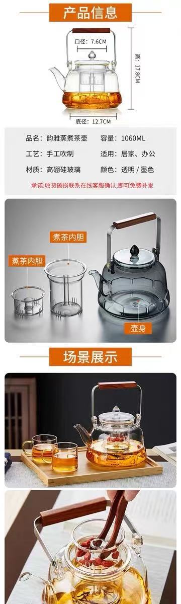 Термостойкий чайник для пара и приготовления пищи, двухцелевой чайник Лянху, большой объем, высокобorosilicatное стекло, набор для кипячения воды и заваривания чая