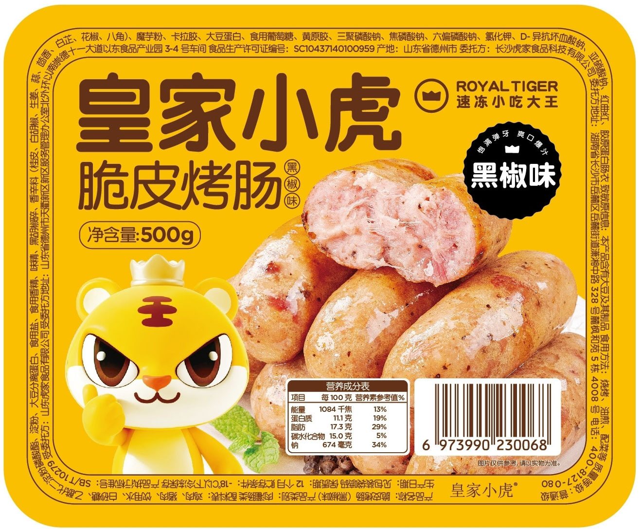 Гриль-колбаса Royal Tiger с черным перцем, изготовленная из тщательно отобранных ингредиентов, вкус черного перца полон мясного аромата и легко воспроизводит уличную вкусноту