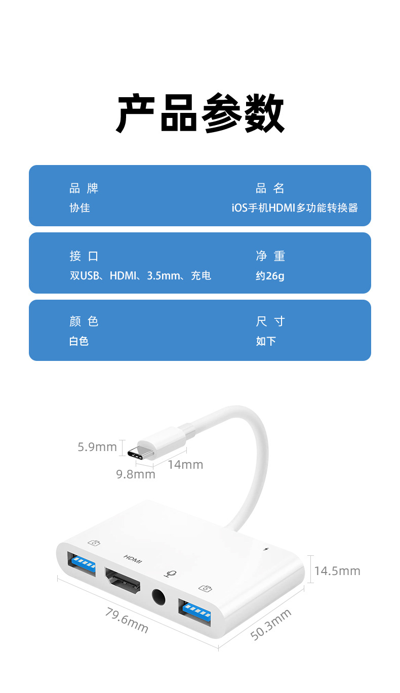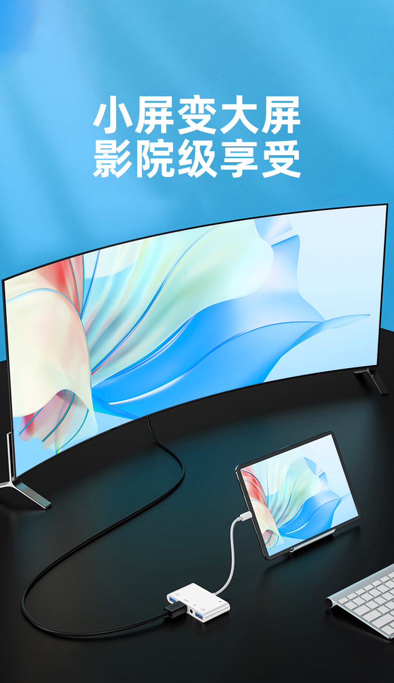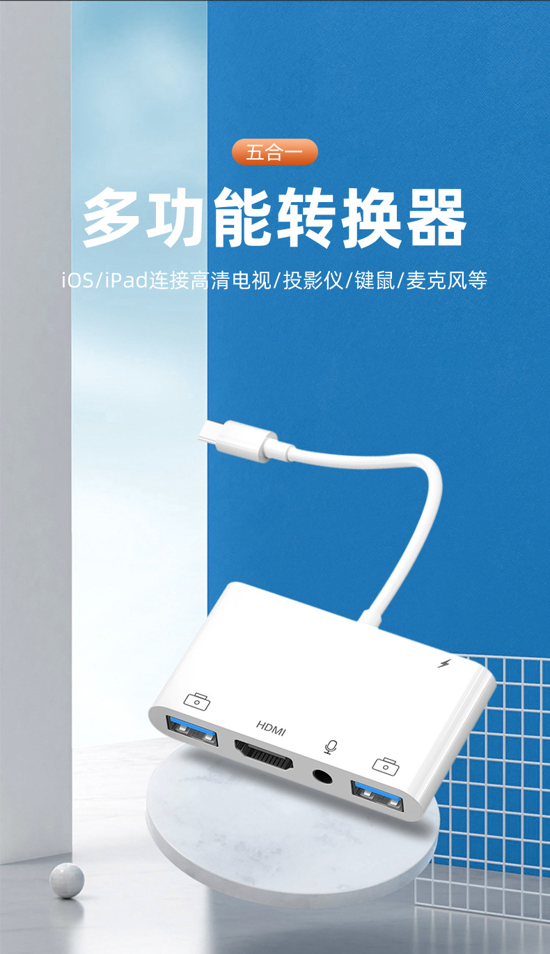 同屏器 投屏器 多功能五合一USB充电3.5 HDMI hdmi 转接器
